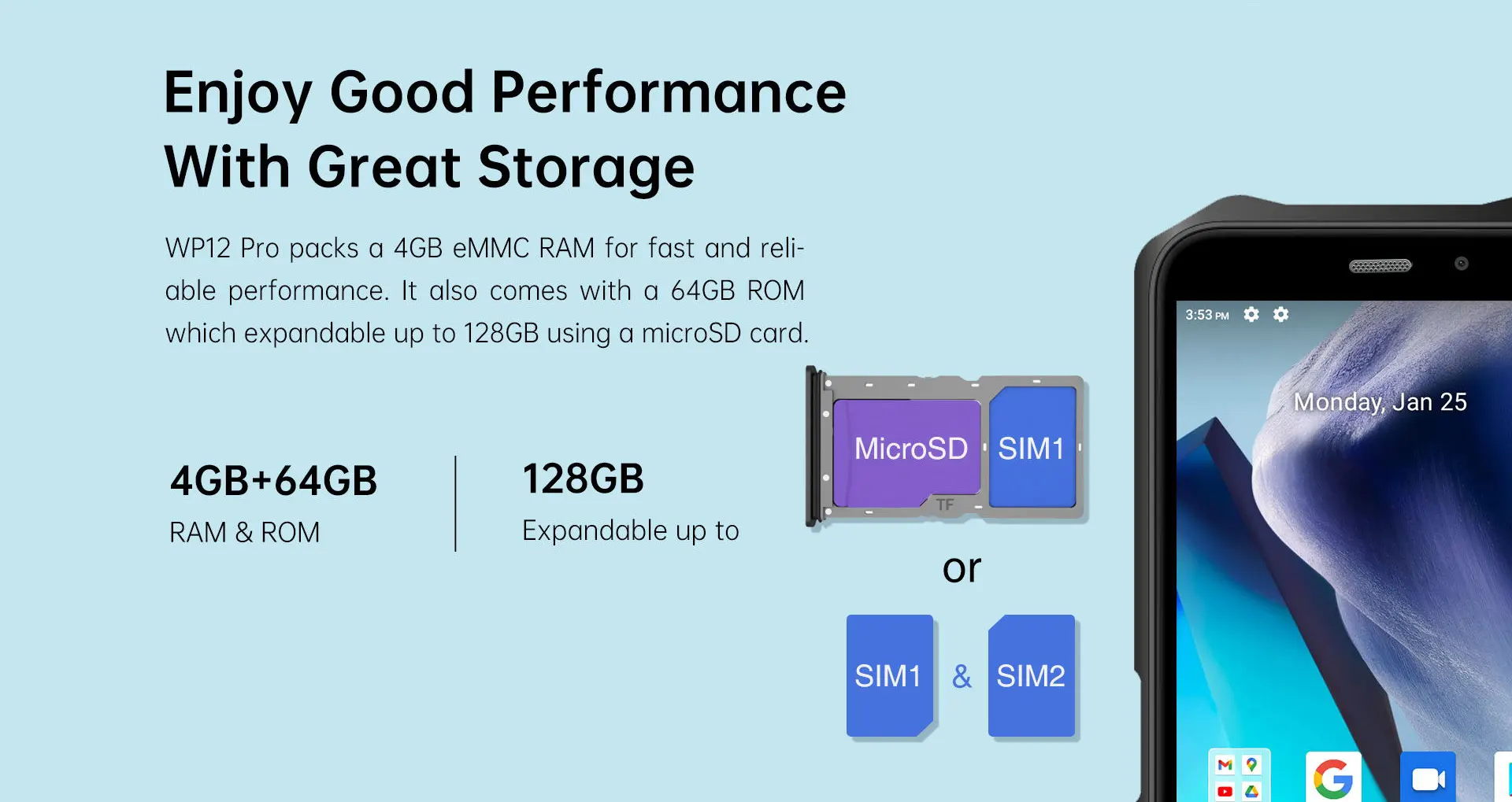 Отличный телефон. Довольно лёгкий и компактный в отличие от других защищённых телефонов - кирпичей. Версия Pro - 64 гб на борту, всё как в описании. Продавец долго отправлял, но телефончик приехал до Москвы за 2,5 недели. Продавцу спасибо! Отличный Прайс для такого телефона.