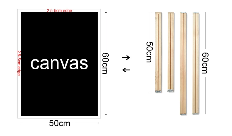 (Пожалуйста, убедитесь, что ваш картина имеет дополнительный вес 2,3 см, то есть размер брезентового должно быть не менее большего размера, по сравнению с размерами, представленными в 4,6 см деревянный каркас)