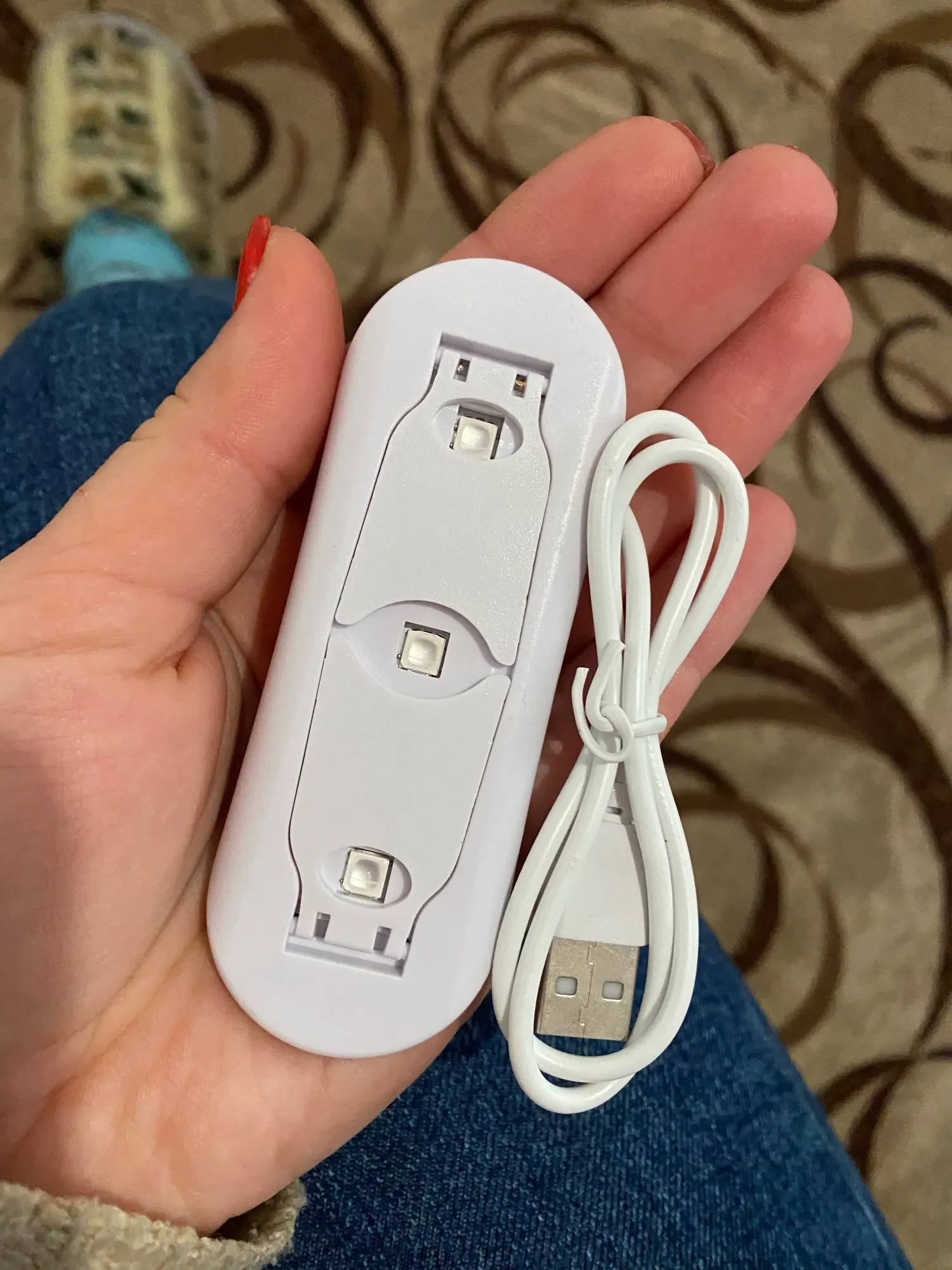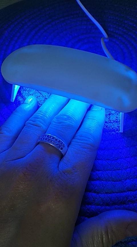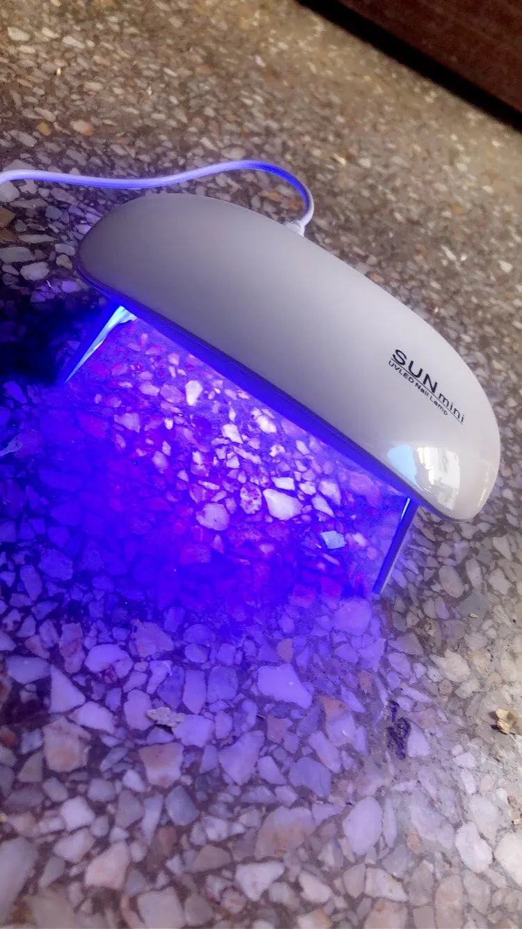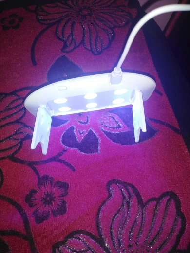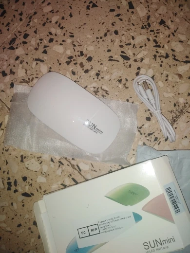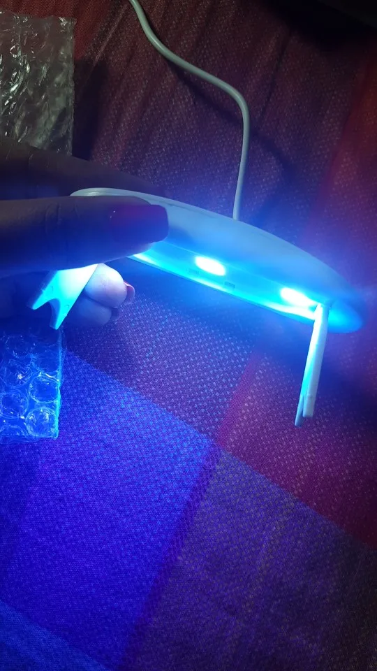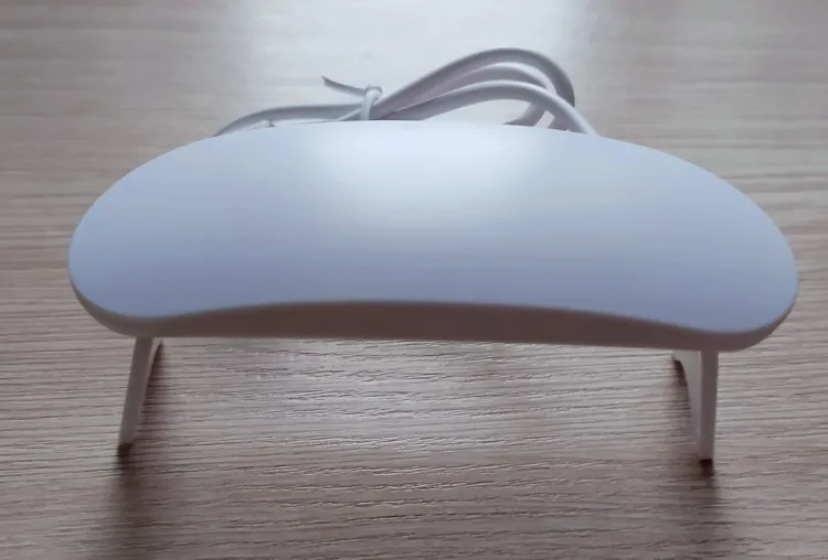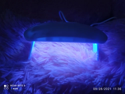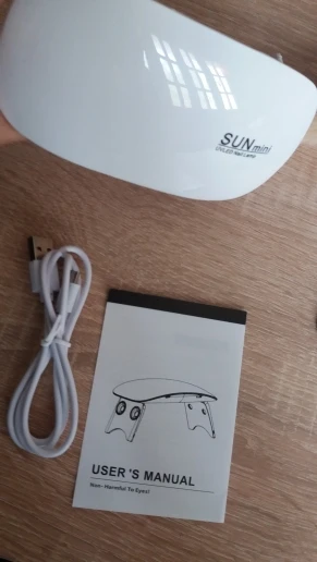 лампа пришла меньше, чем за месяц. крошечная, но лак сушит неплохо. в комплекте USB шнур, для работы пришлось использовать блок питания от телефона