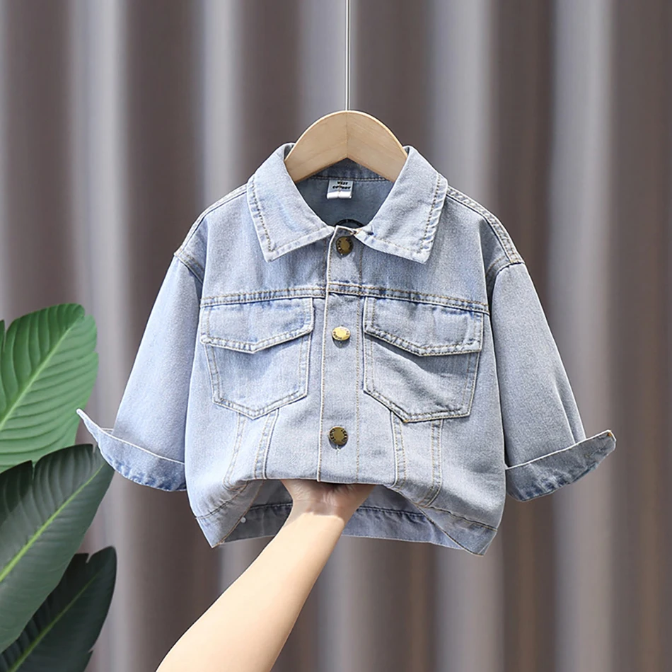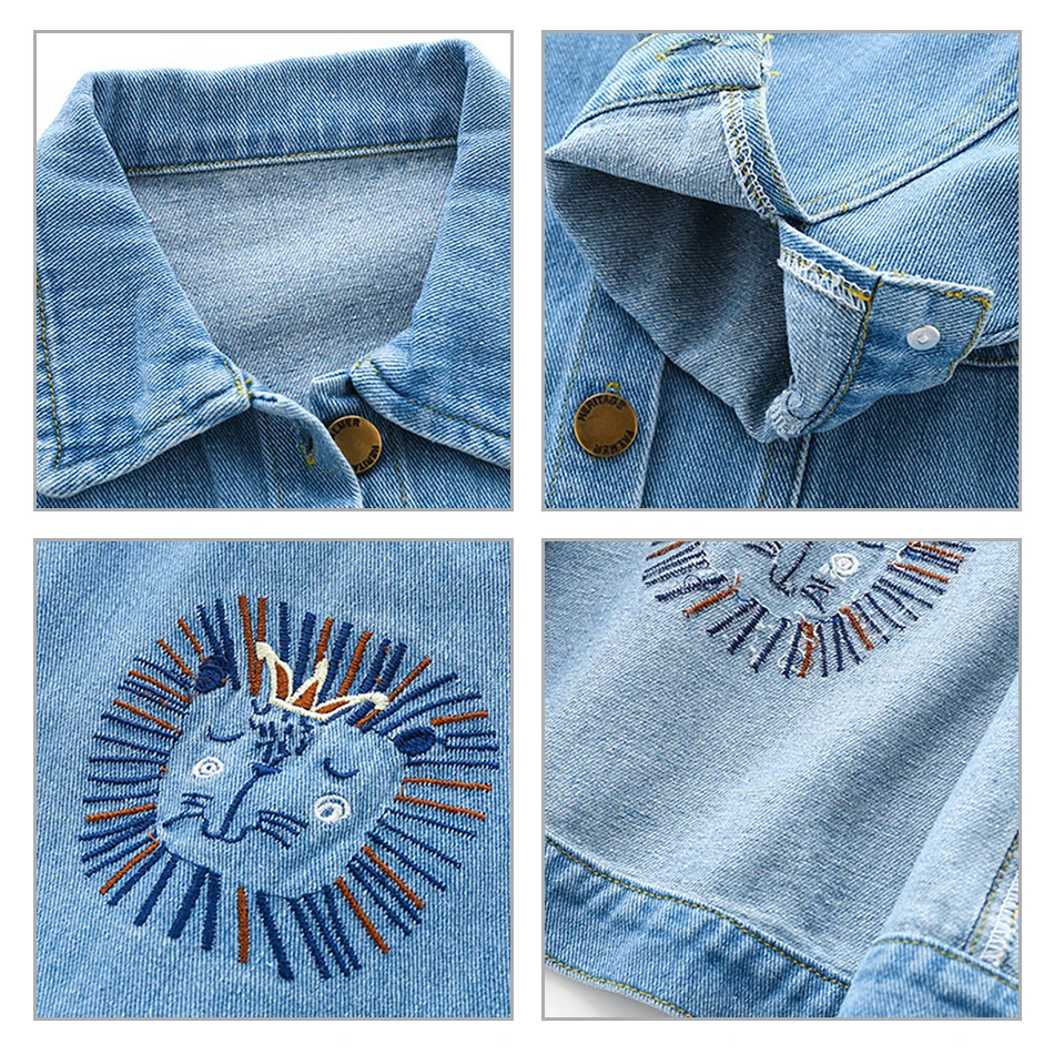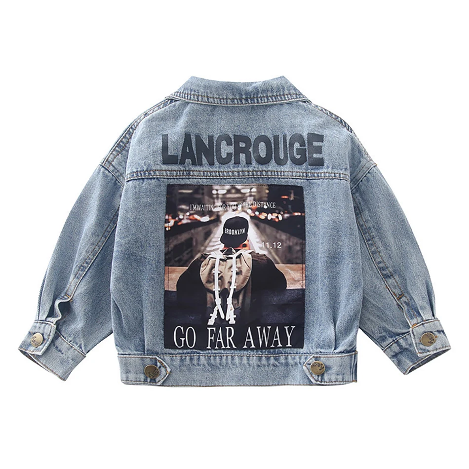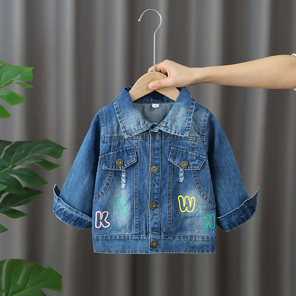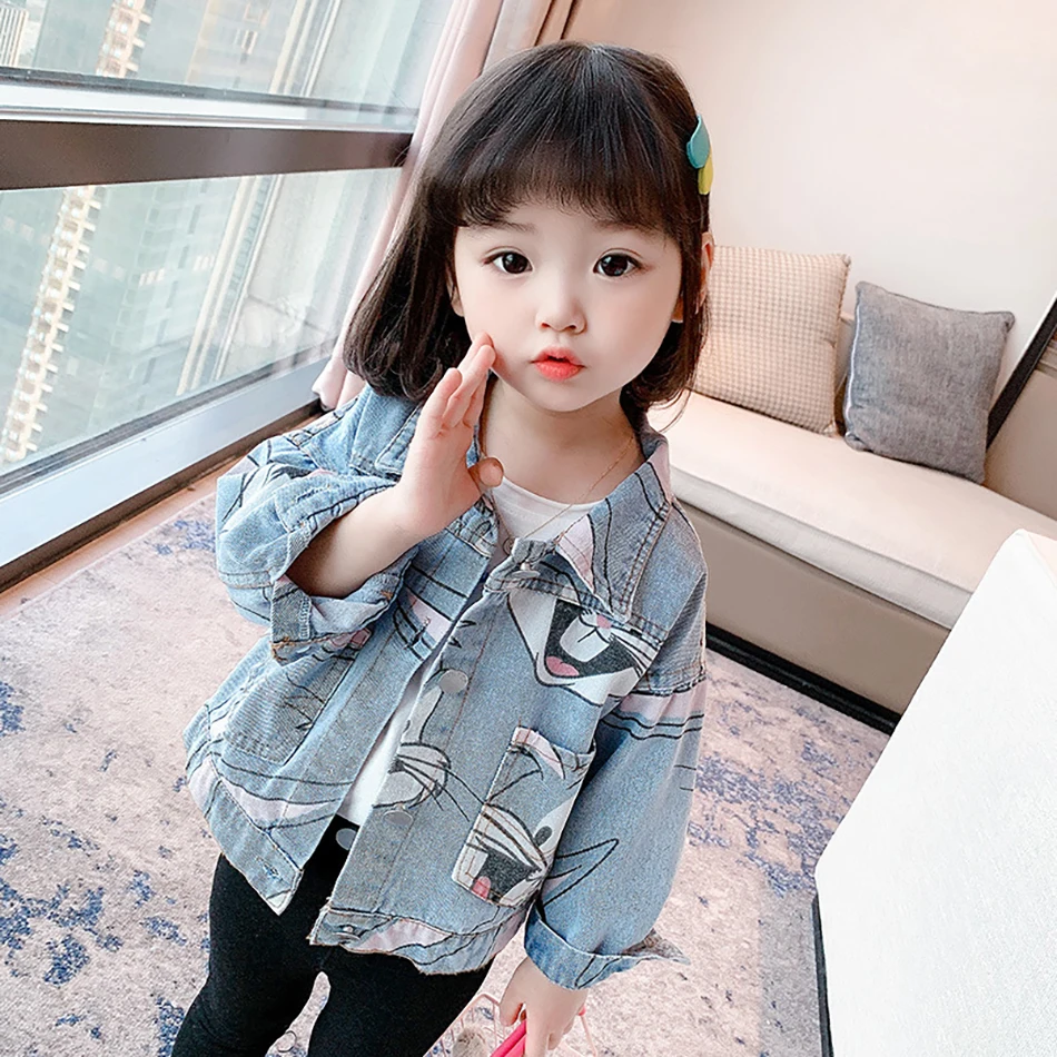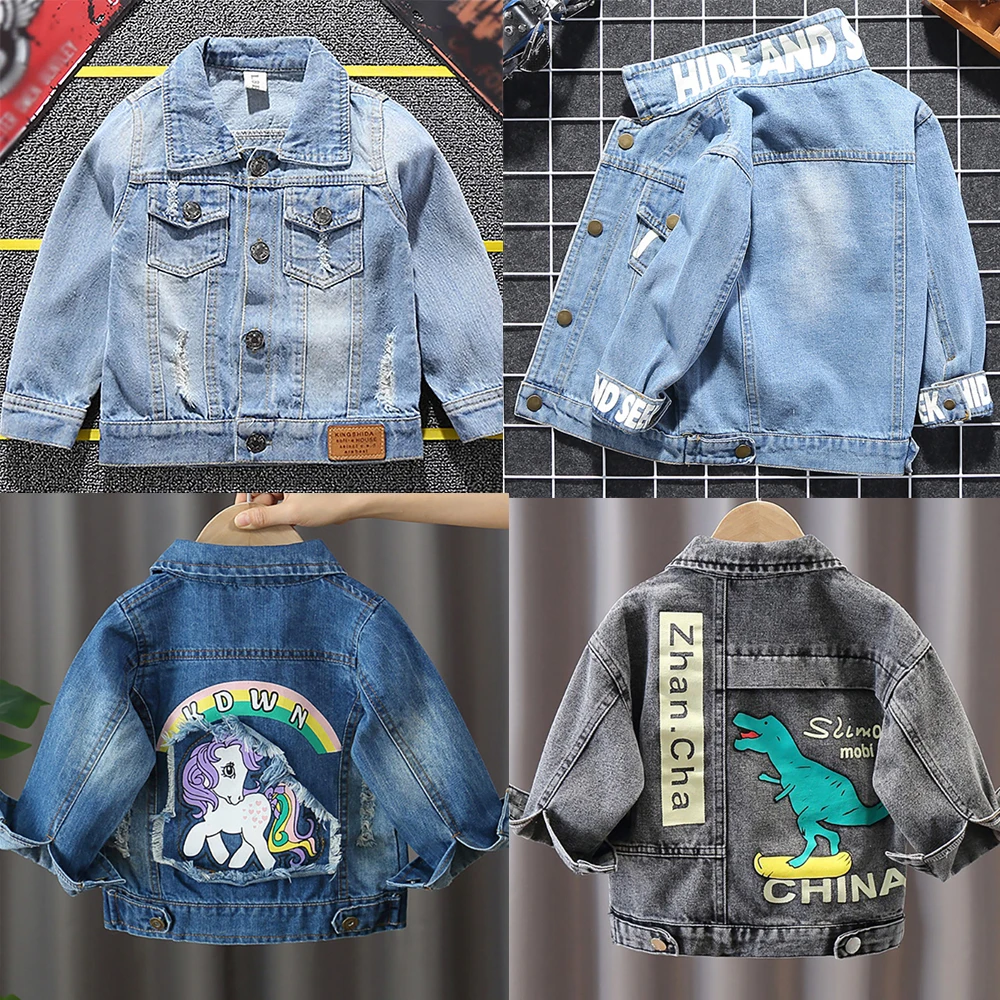 Джинсовая куртка с мультяшным рисунком для мальчиков и девочек, джинсовые пальто, Новое Модное детское демисезонное пальто, детская куртка, детское пальто, куртка для девочек