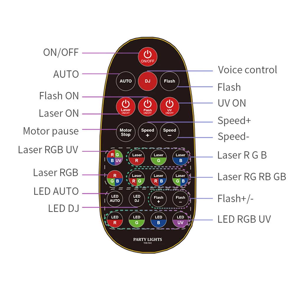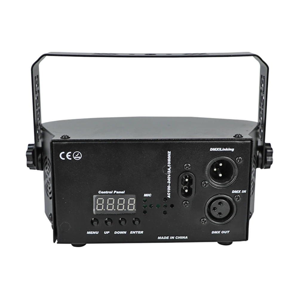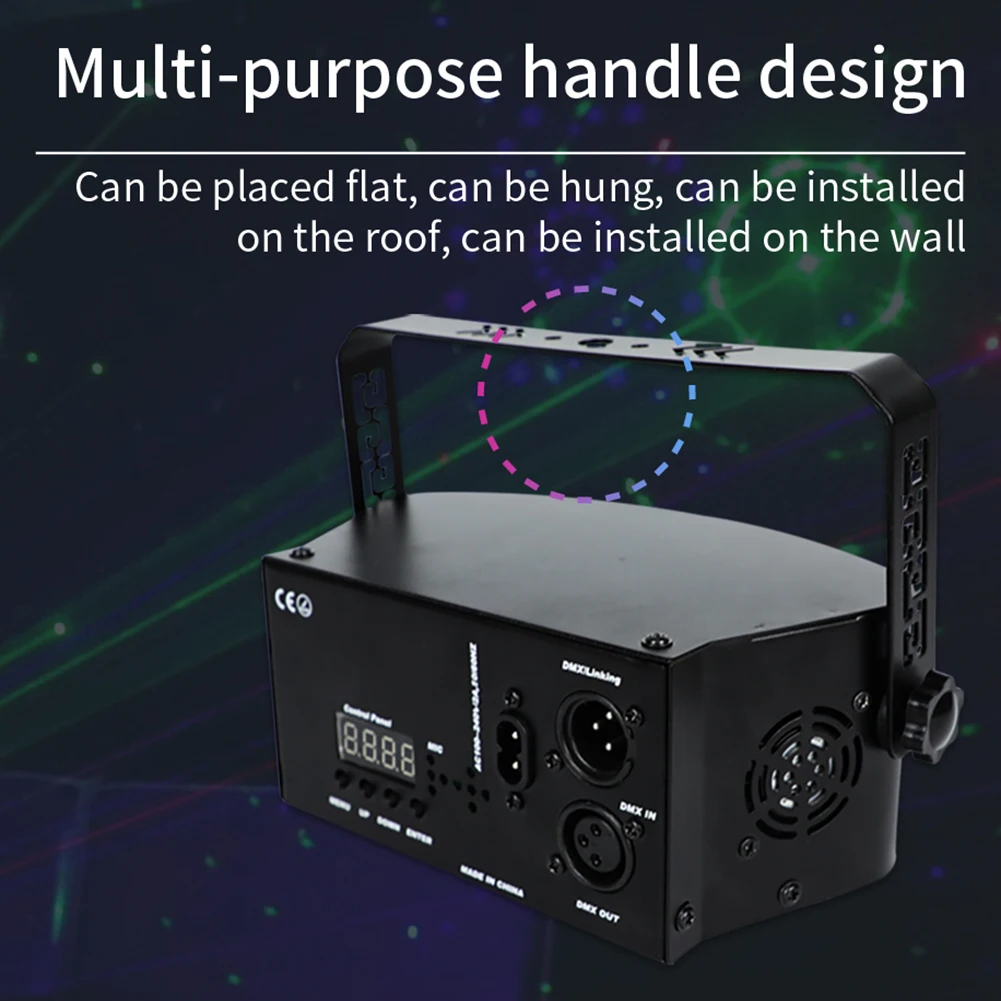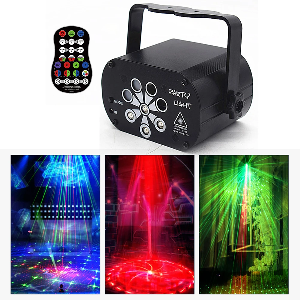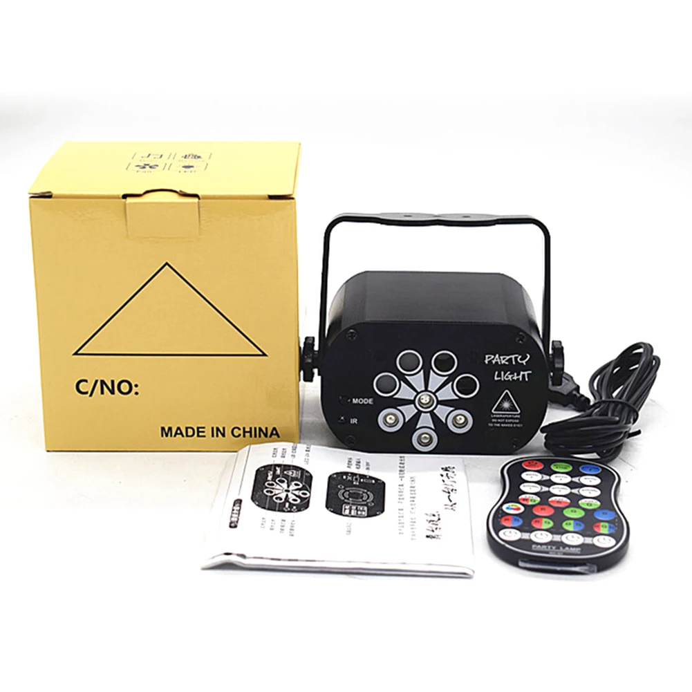 Профессиональный Сценический светильник RGB с цветным пультом дистанционного управления, атмосферная лампа, Активированный звук, лазерный проектор, светильник ing для DJ Disco Dance Bar PubХарактеристика:Высокая яркость лампы, яркий и мягкий цвет, хорошая производительность цветопередачи.Сигнал DMX, свободное управление, одновременная работа нескольких ламп и фонарей.Мощное тепловыделение, мощный вентилятор, высокопроизводительное тепловыделение.Спецификация:Источник питания: AC110-240,50 Гц/60 ГцСтробоскоп-светильник: трехцветный RGB светильник + УФ-лампаМощность: 500 мВтРежим управления: DMX-512/Голосовое управление/самоходный/мастер-рабМощность лазера: Красный: 200/Зеленый: 50/синий: 150Система сканирования: высокоточное сканирование шагового двигателяРазмер посылка: 245x153x141mmРазмер изделия: 185x90x80 ммВес изделия: 1150 гВилка: ЕС/Великобритания/СШАПримечание:В связи с различиями мониторов и эффектами освещения реальный цвет товара может немного отличаться от цвета на фотографиях. Спасибо!Возможны отклонения в 1-2 см вследствие измерений вручную.