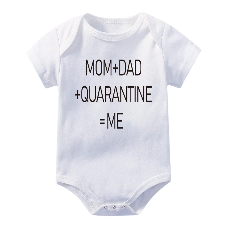 Смешные Носки для новорожденных хлопковые футболки для мамы + папа + карантин = меня с надписью для малышей; Детский комбинезон с короткими рукавами для девочек и мальчиков комбинезон для детей; Одежда для детей 0-24 месяца, новинка