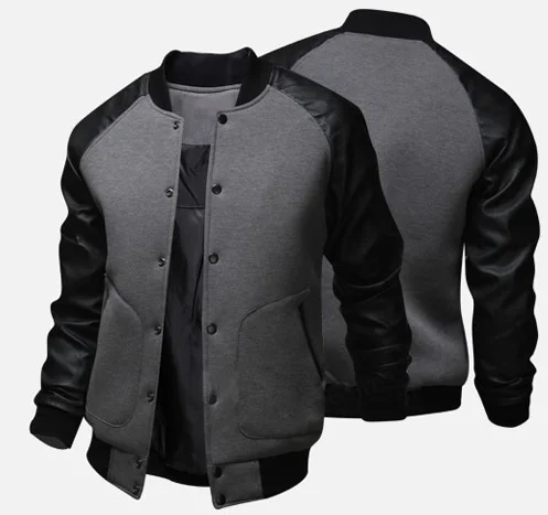 Модная мужская кожаная куртка с воротником на весну и осень, бейсбо...