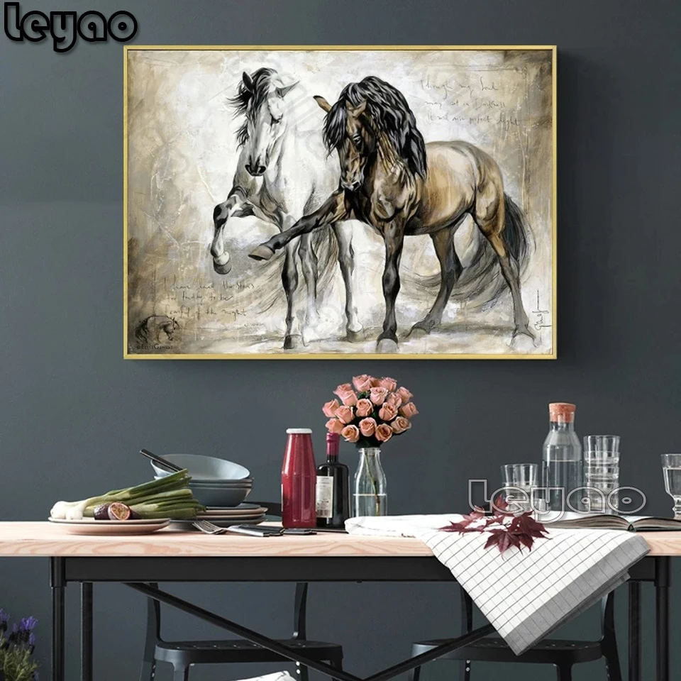 DIY Алмазная картина Черная лошадь и белая лошадь бриллианты вышивка мозаика распродажа полная дрель круглые квадратные животные Стразы картинки
