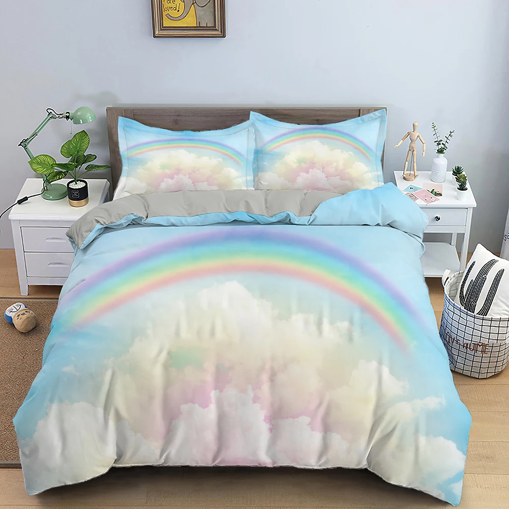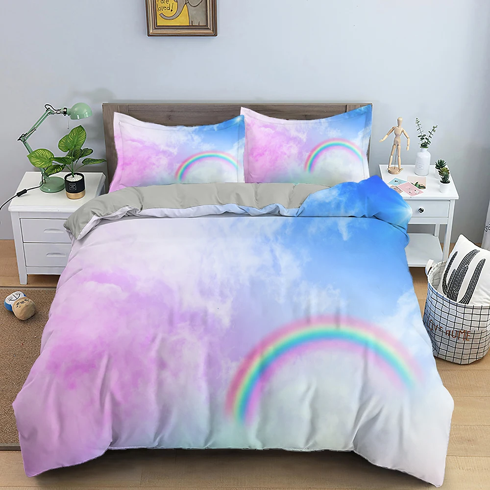 Комплект постельного белья для девочек с красочными облаками, пододеяльник большого размера, Комплект постельного белья, Радужное одеяло, семейный текстиль, постельное белье