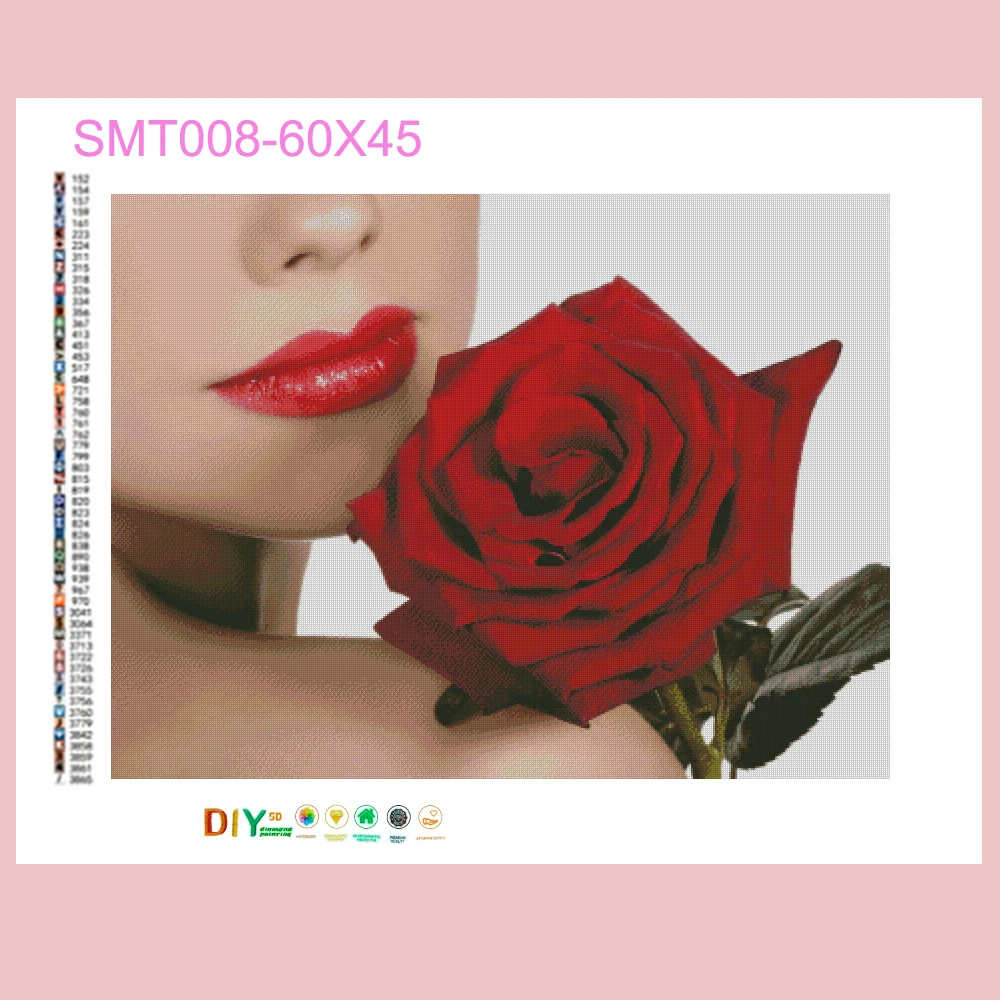 Алмазная картина 5D "сделай сам", красная губа, девушка, роза, полная квадратнаякруглая Алмазная вышивка, Набор для вышивки крестиком, настенный художественный Декор