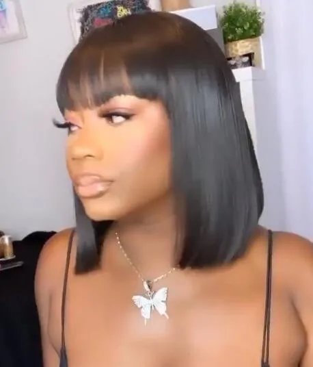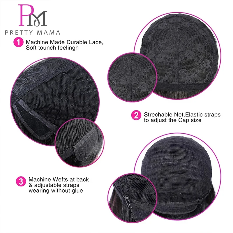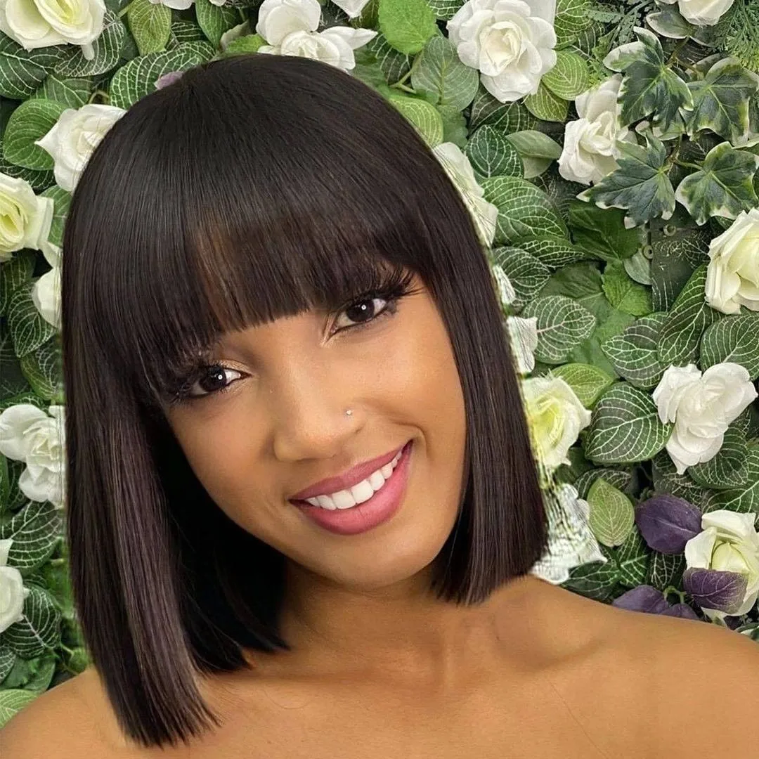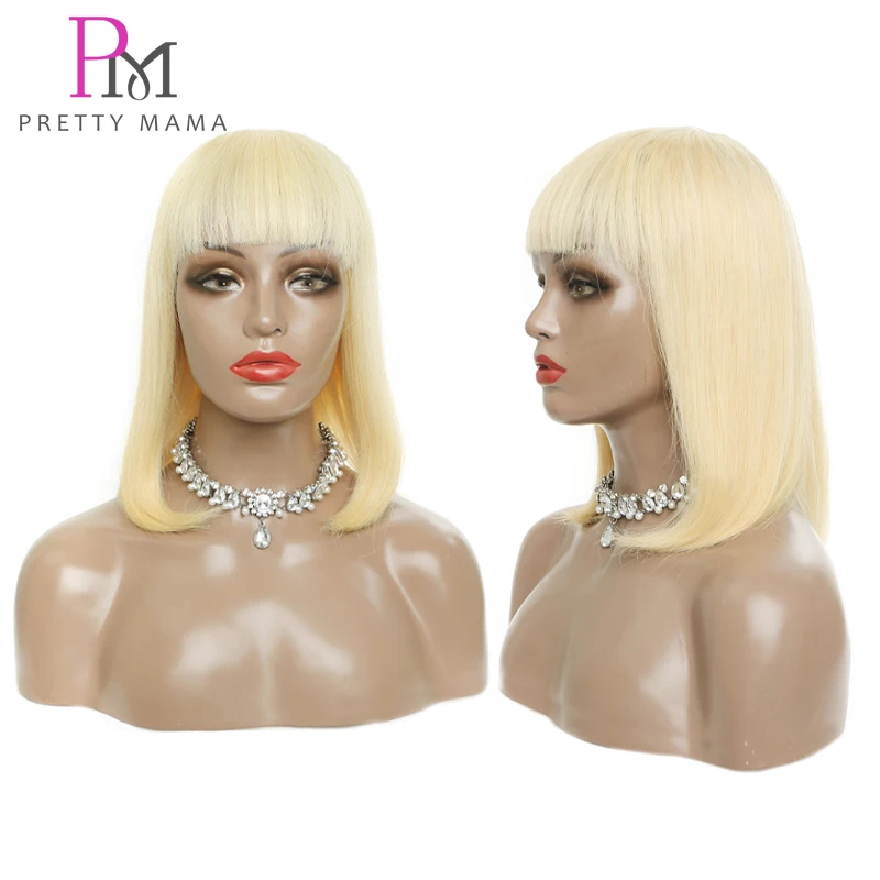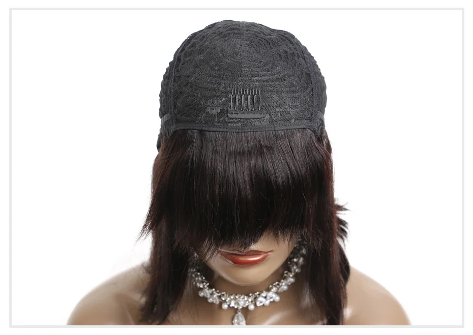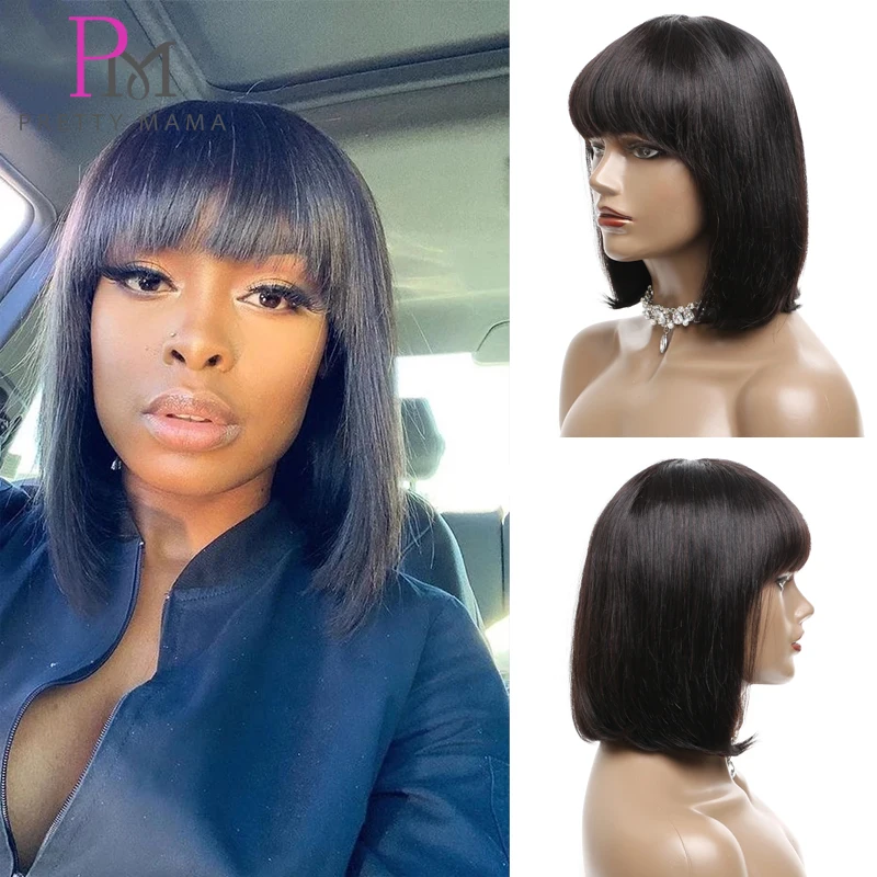 Парик из натуральных бразильских коротких прямых человеческих волос с челкой, дешевый парик из прямых волос, 6 - 14 дюймов, женский парик с бахромой, Pretty Ma