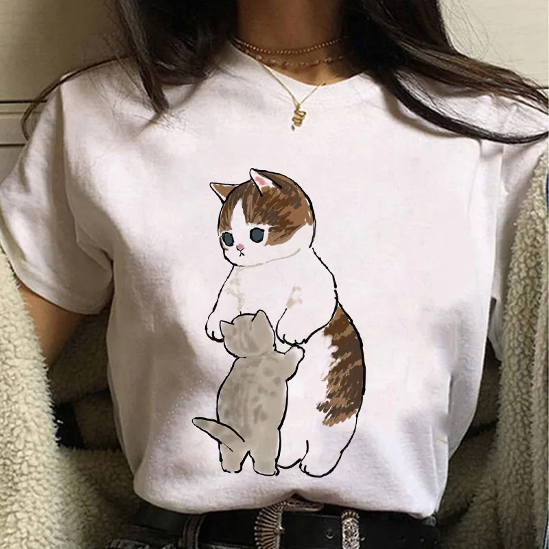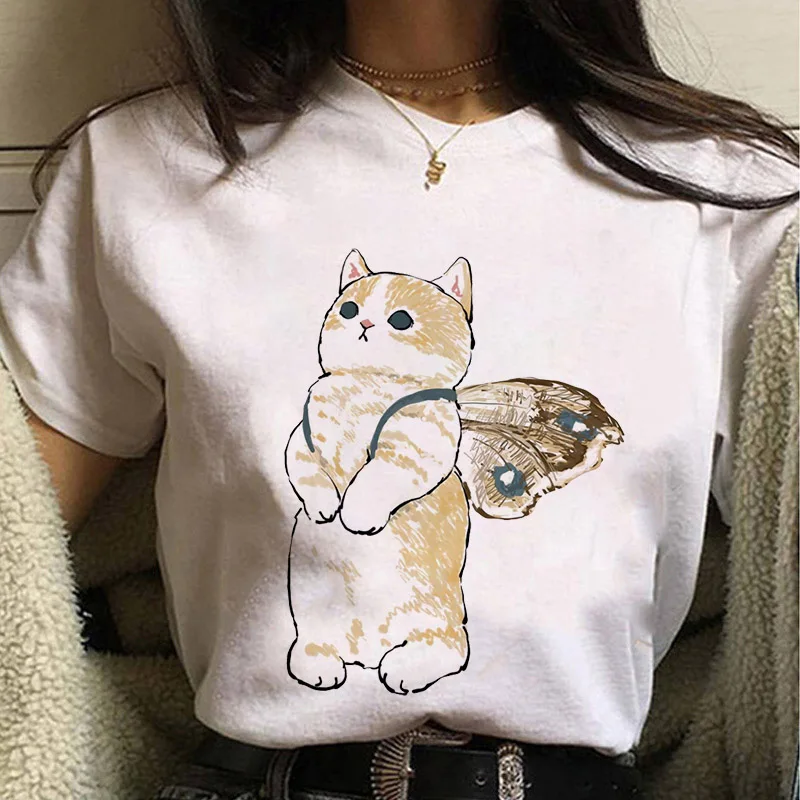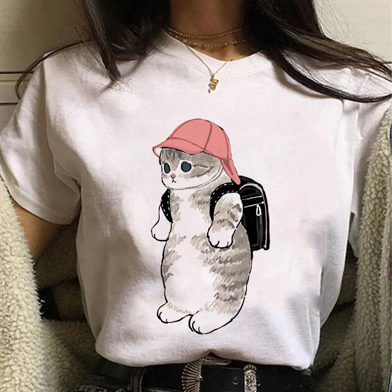 Летняя женская футболка с принтом кота из мультфильма Harajuku, пов...