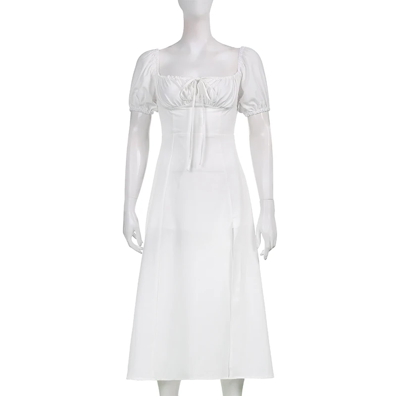 Белое однотонное Элегантное Длинное Платье с вырезом на груди, лето 2021, женское повседневное праздвечерние чное платье во французском английском стиле для отпуска, наряд, Iamhotty