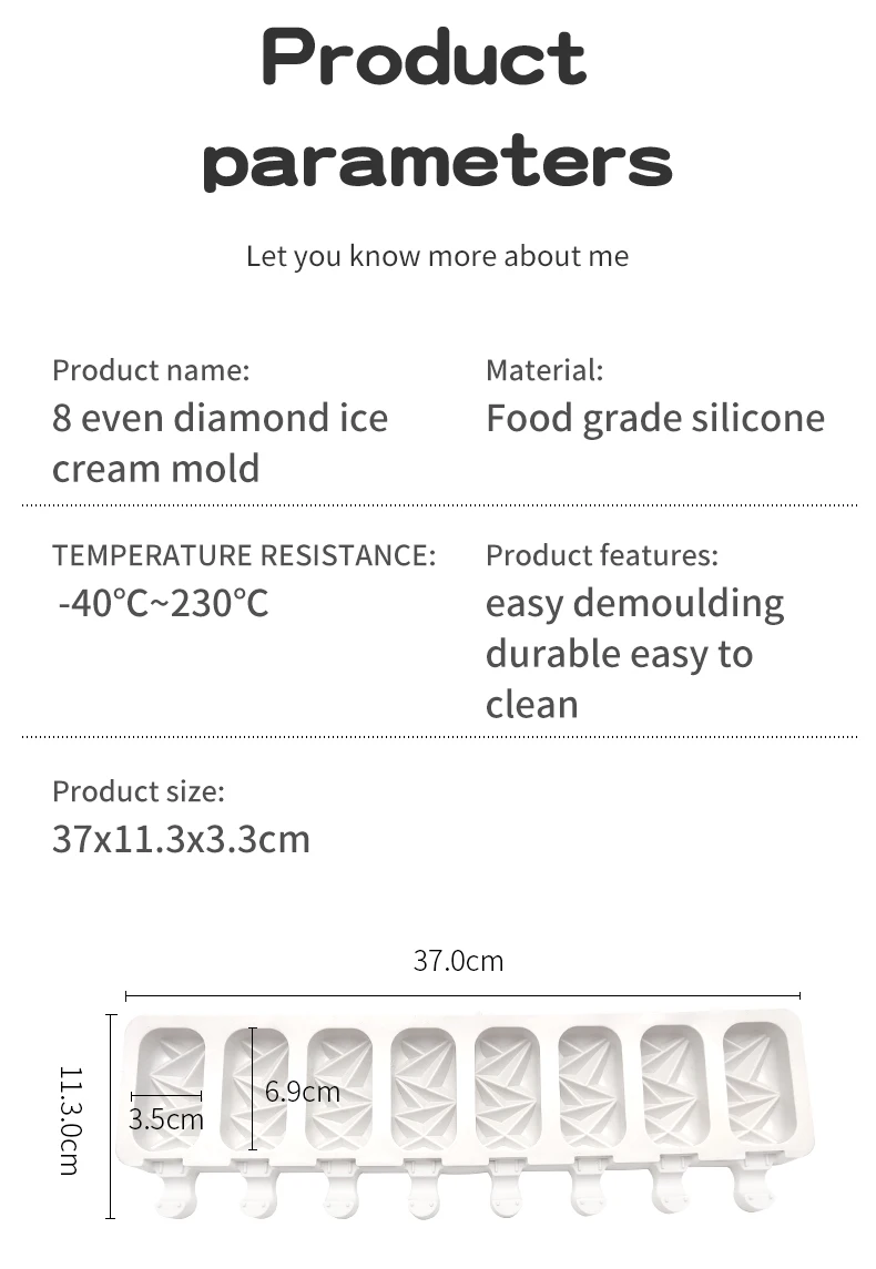 Силиконовая форма для мороженого с 8 полостями, алмазная маленькая ...