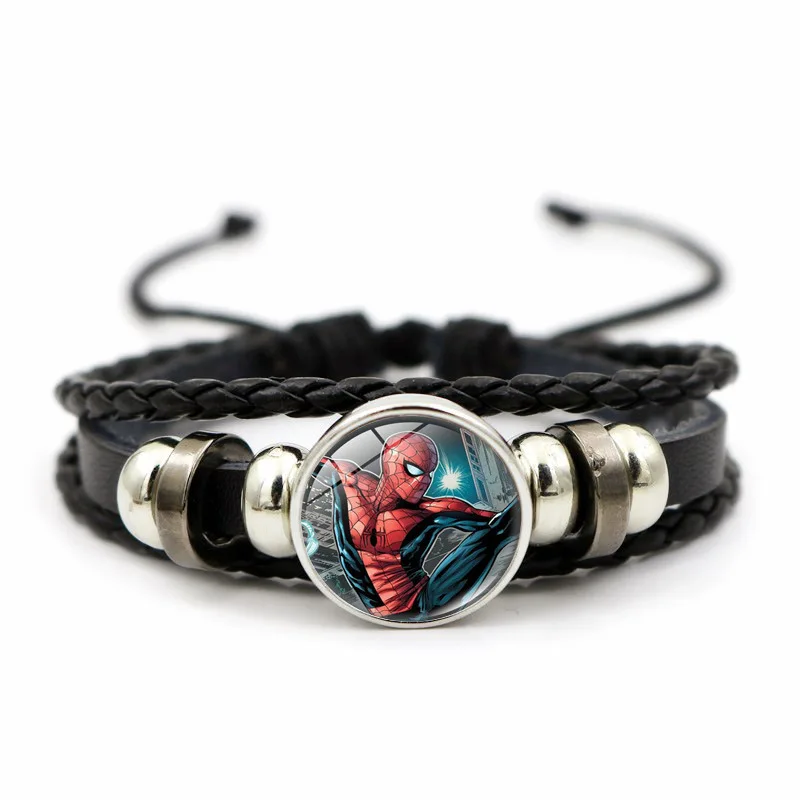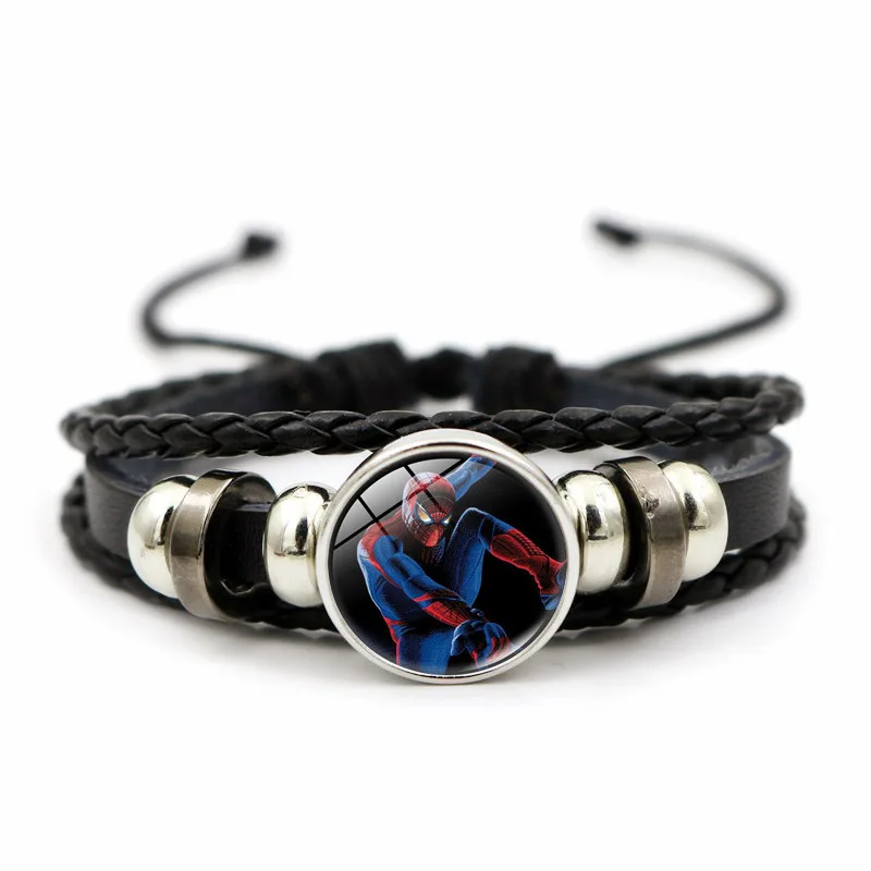 Кожаный браслет Marvel Spideman Мстители, фигурка героя, игрушки, браслет коспая, печатный стеклянный браслет с драгоценными камнями, детские подарки, игрушки