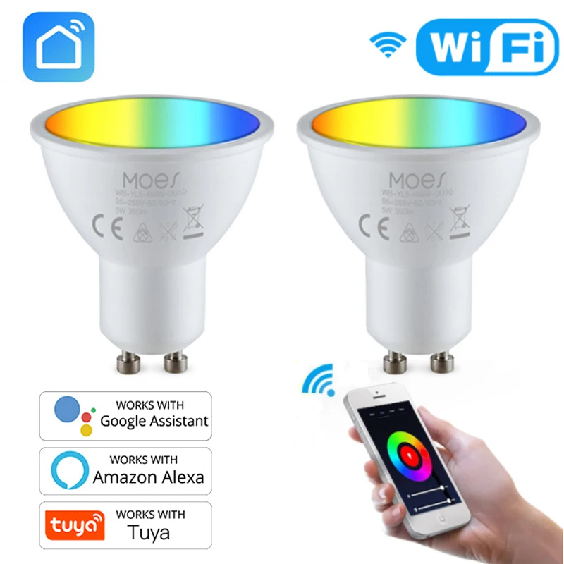 Tuya WiFi умная светодиодная GU10 лампы RGBW C + Вт белого цвета, доступен в 5W светодиоидная лампа с регулируемой яркостью лампы приложение Smart LifeTuya дистанционного Управление работать с Alexa Google Home