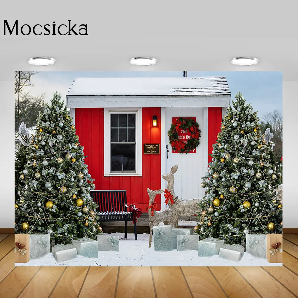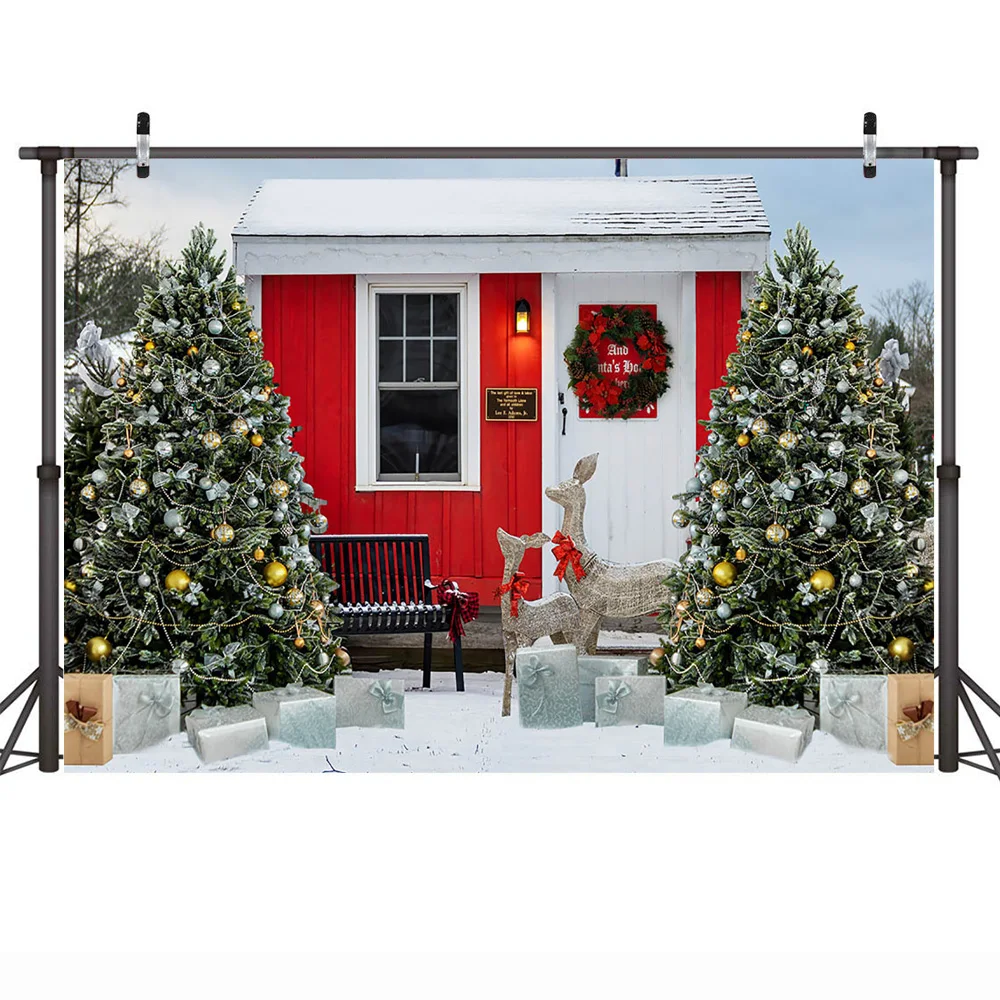Рождественский фон Снежная сцена рождественский дом детский Портрет фон для фотостудии Подарки Рождественская елка Лось реквизит для фотосъемки