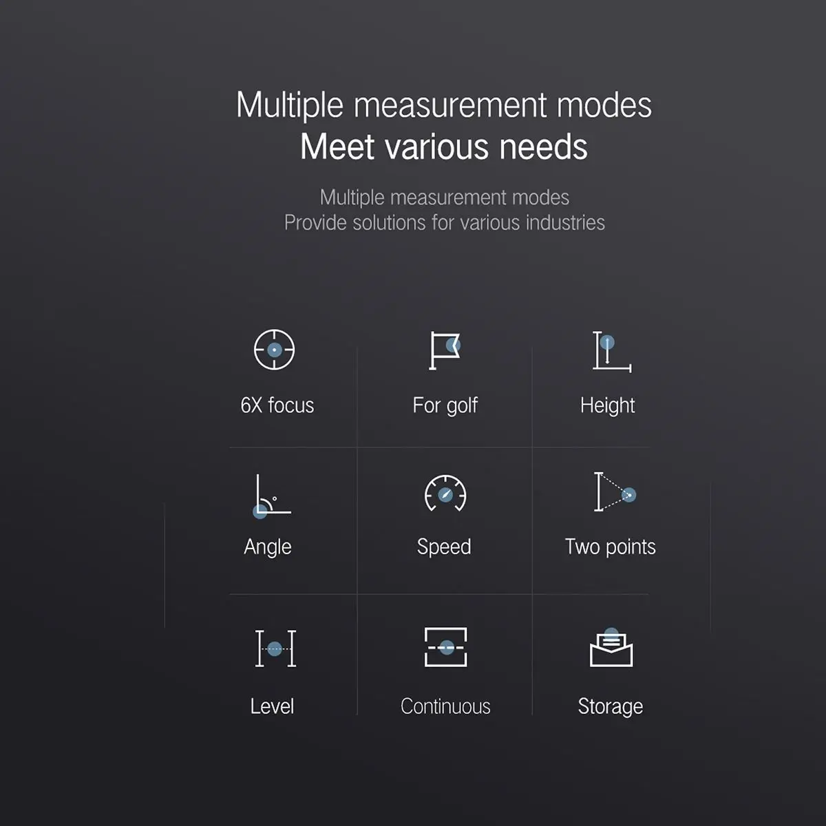 -Четыре режима для любых обстоятельств:Для охоты и гольфа с четырьмя режимами: дальность, сканирование, туман и скорость. Вы можете легко определить цель с помощью непрерывного сканирования.