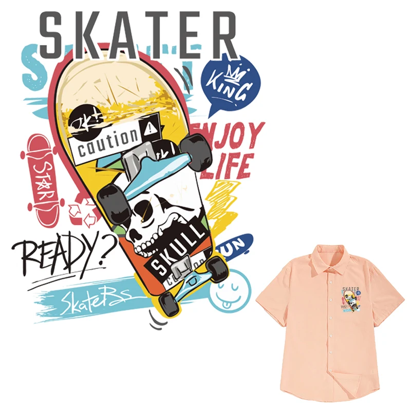 Голова черепа теплопередача Винил теплопередача Топы Diy Аппликация...