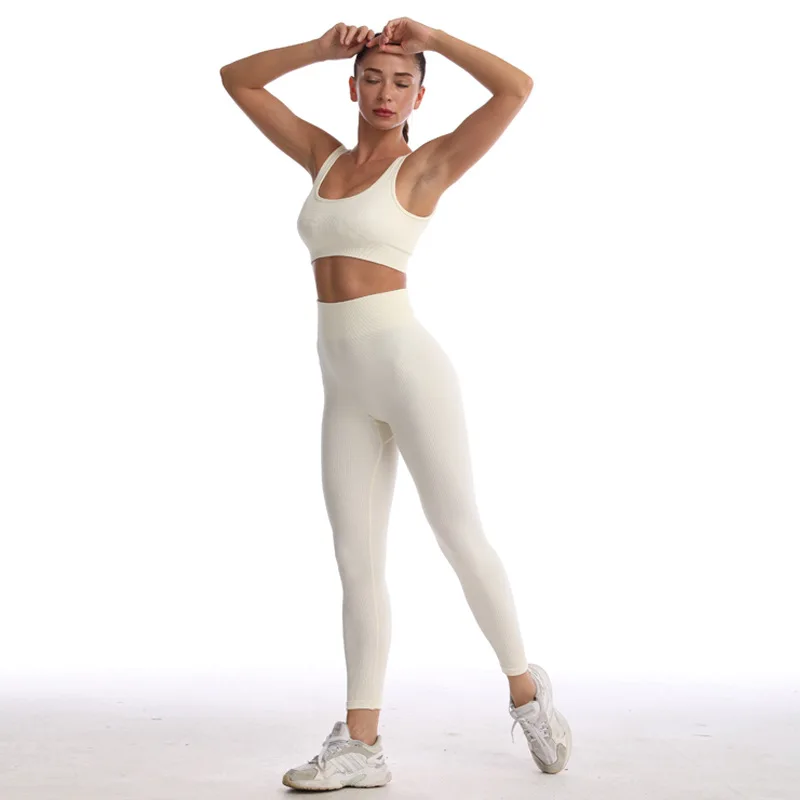 Женские Бесшовные комплекты для йоги, женская одежда для фитнеса в рубчик, спортивный костюм, спортивный бюстгальтер для спортзала, леггинсы с высокой талией, комплект для тренировок, 2 шт.