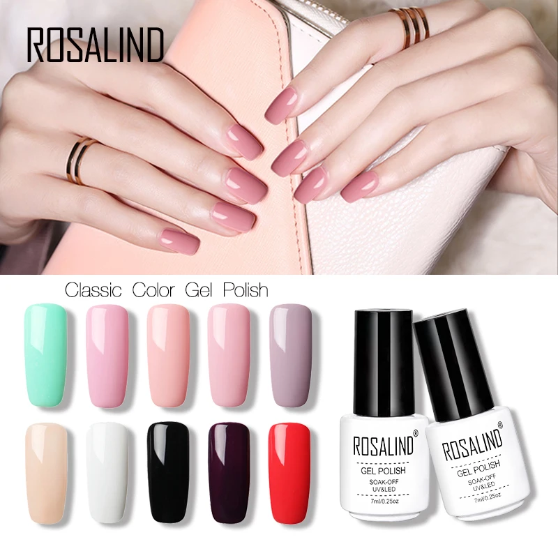 ROSALIND 7 мл отмачиваемый чистый цветной гель для ногтей яркий для дизайна ногтей светодиодный/УФ-лампа