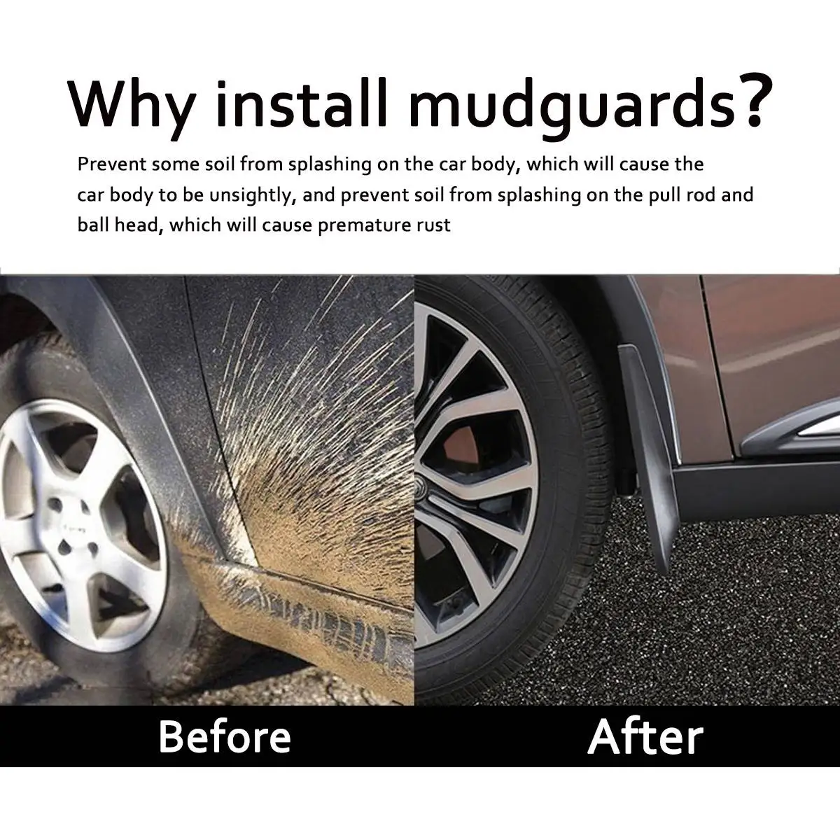 Особенности:-100% новый и высокое качество!-Простая установка, прямая посадка.-Защитите свой автомобиль от грязи, грязи, снега, гравия и дорожной соли.-Близкое формование, точное положение отверстия, подчеркивающее превосходный производственный процесс.-Сжатие, изгиб, искажение и долговечность.