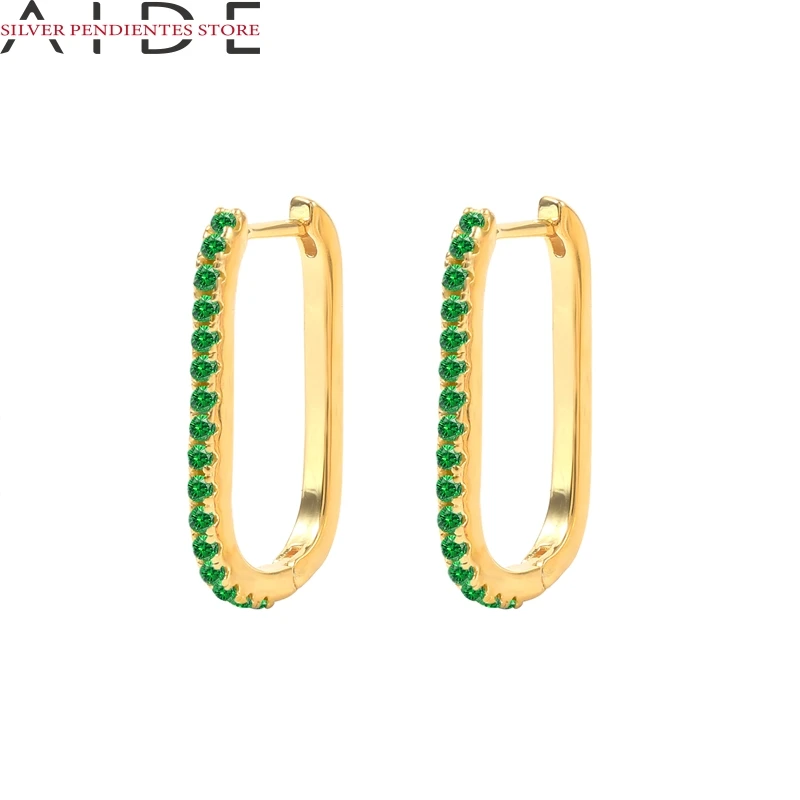 Женские круглые серьги-обручи AIDE из стерлингового серебра 925 пробы с розовым, зеленым, фиолетовым цирконием, 2021 тренд, свадебные украшения
