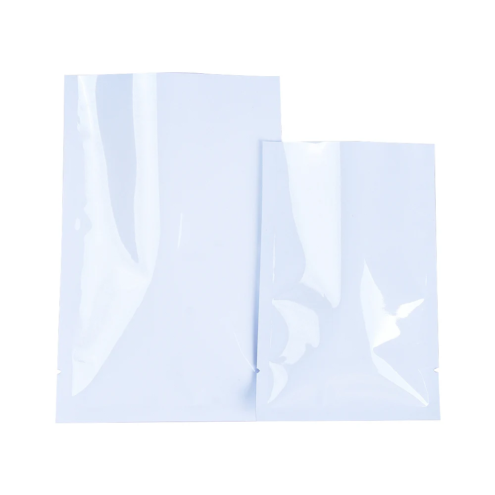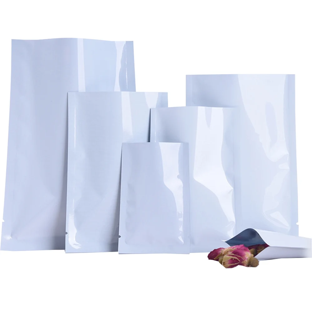 100 шт.лот белая алюминиевая фольга с открытым верхом, пакеты с вырезом, вакуумная термоизоляция, пакеты для конфет, бобов, чая, порошка, оптовая продажа