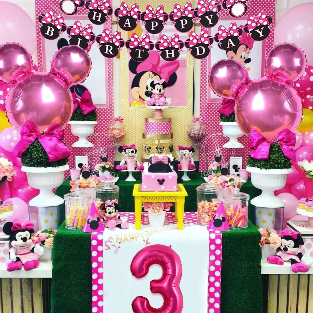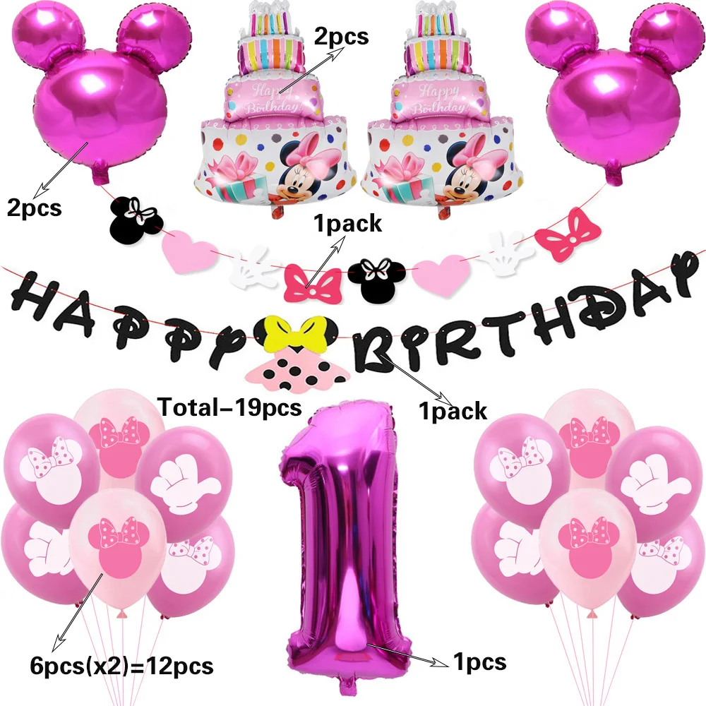 Розовый Топпер для торта Минни Маус и Топпер для капкейков баннер на 1-й День рождения Праздничный декор для маленьких девочек украшение для торта на день рождения