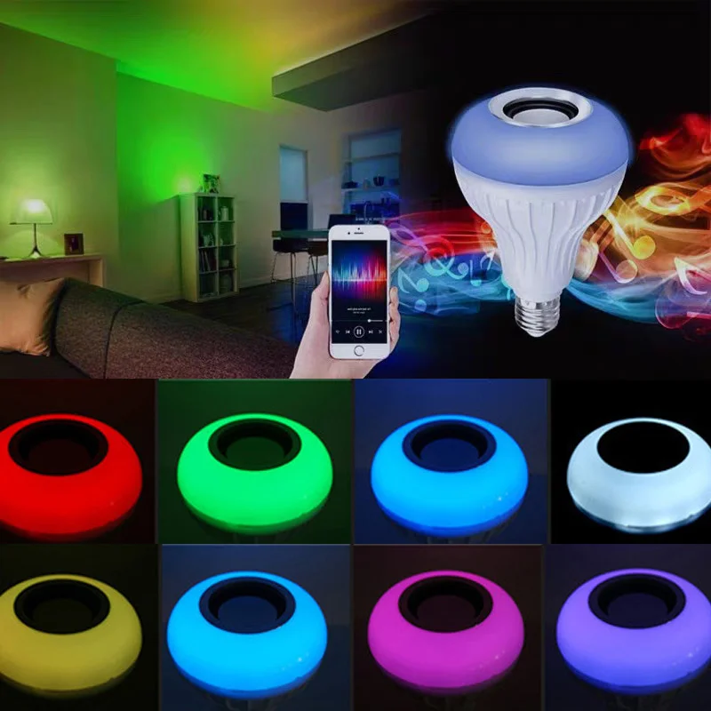 Bluetooth-динамик E27 RGB светодиодный Светодиодная лампа, беспроводное Bluetooth-соединение, воспроизведение звука, лампочка с регулируемой яркостью и 24-кнопочным пультом дистанционного управления