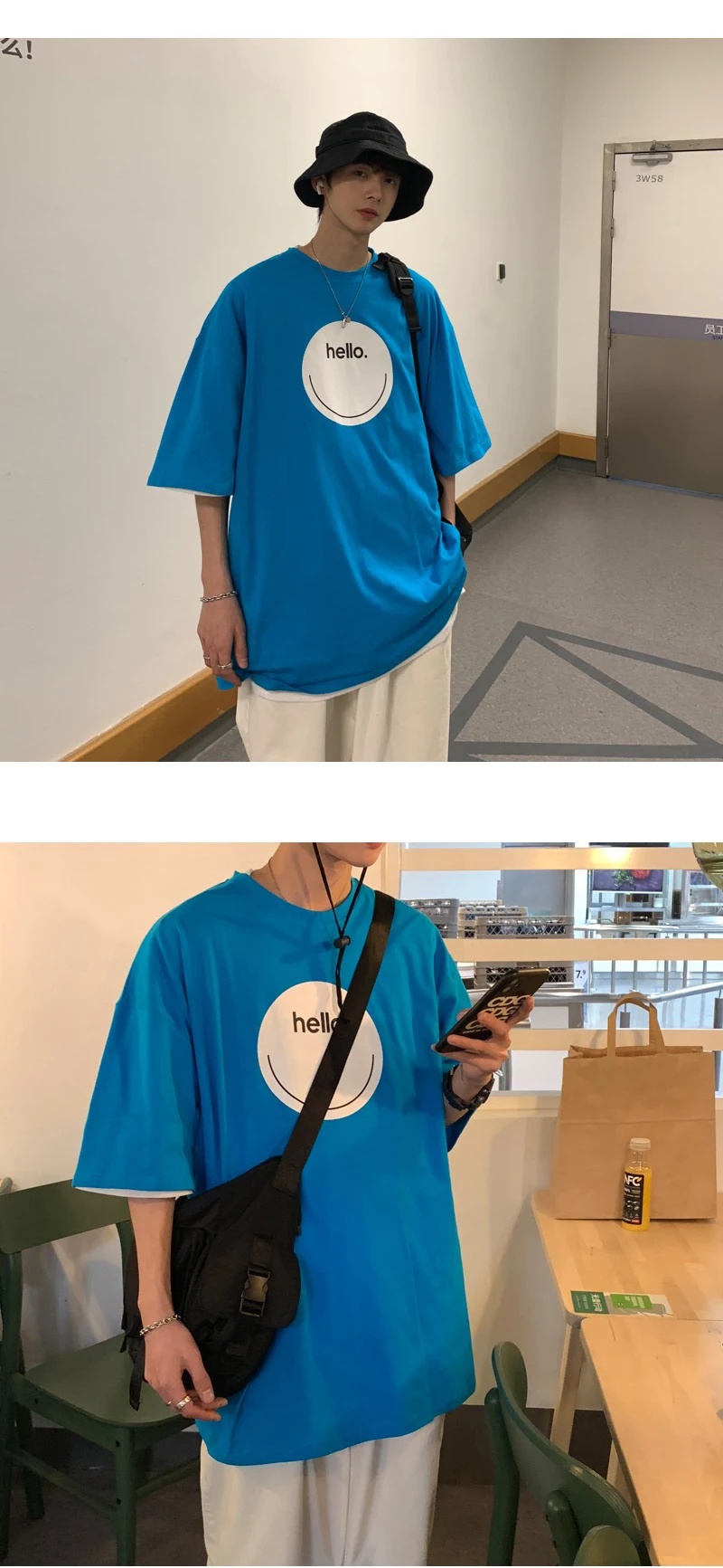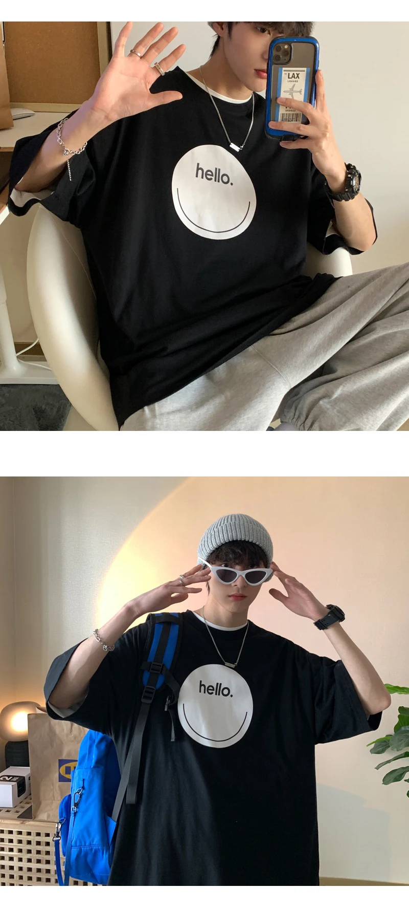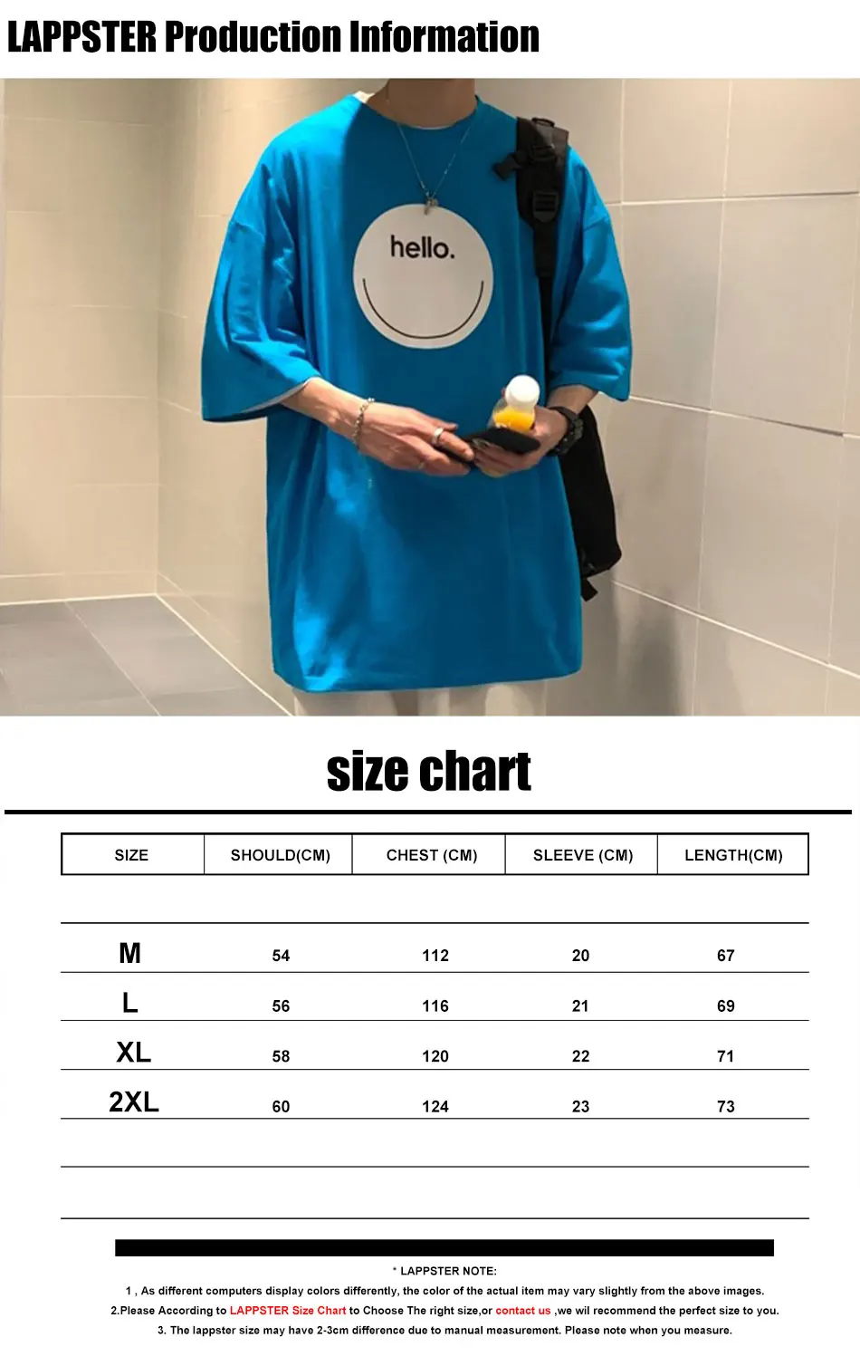 Футболка LAPPSTER мужская с графическим принтом Hello Circle, винтажная дизайнерская уличная одежда в стиле Харадзюку, свободная рубашка в стиле хип-хоп, лето 2021