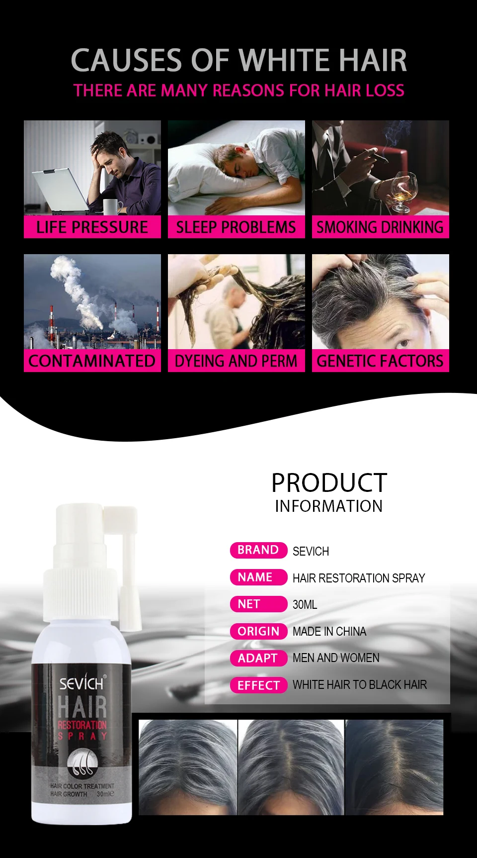 Спрей для роста волос Sevich, средство для лечения седых волос, вос...