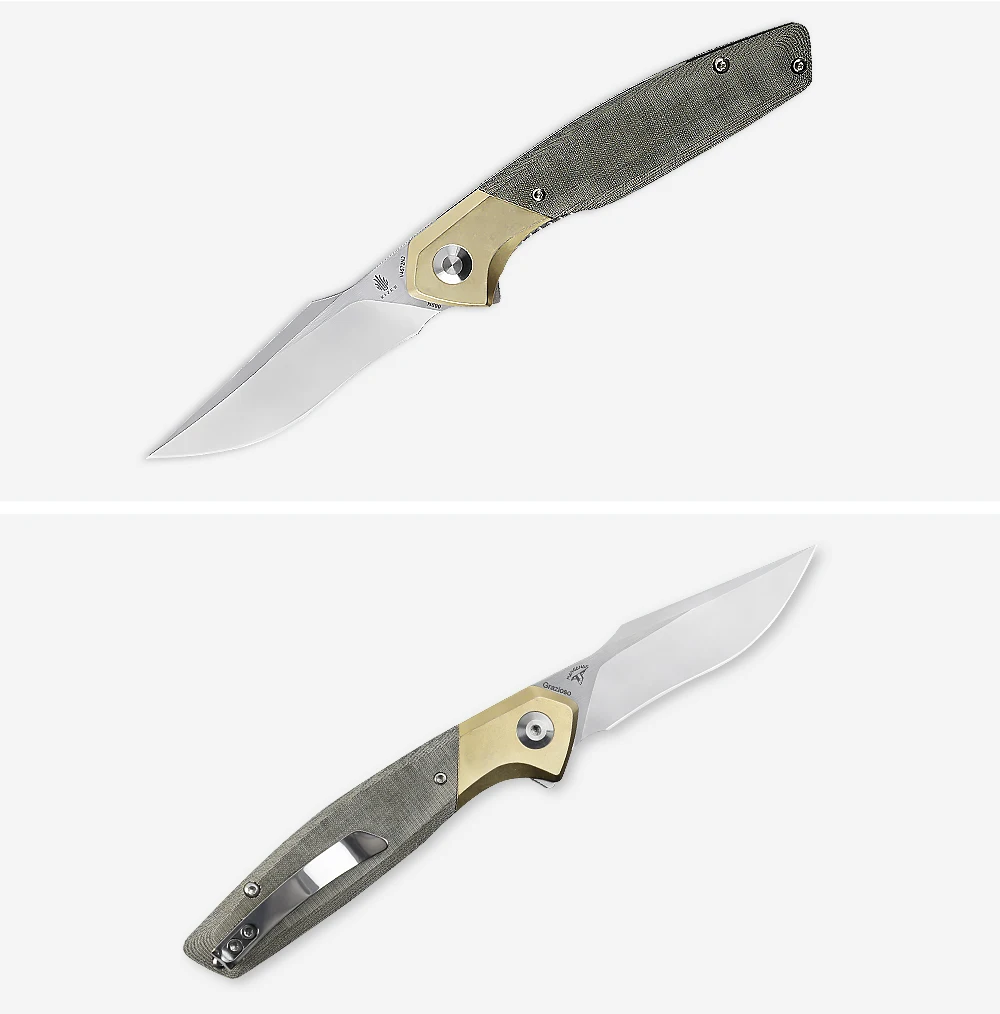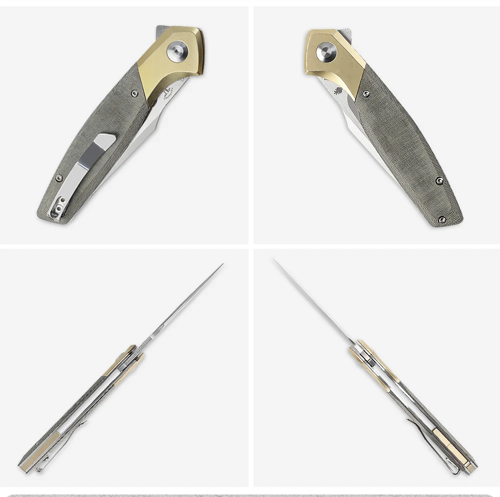 Складной нож Kizer, новинка 2021 года, уличный охотничий нож с зеленой микартой и латунной ручкой, с глубоким карманным зажимом для переноски, благодаioso V4572N2