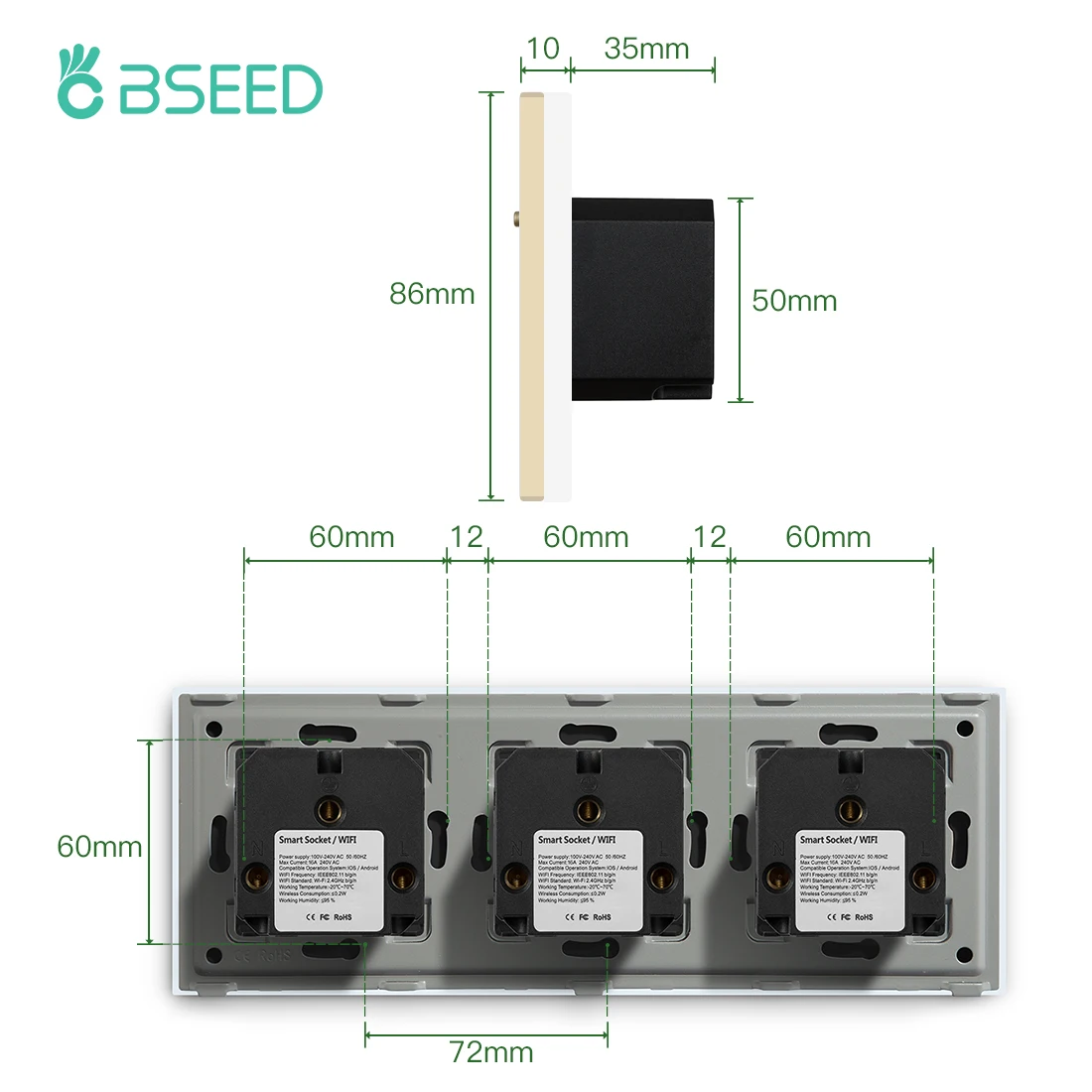 BSEED настенная розетка стандарта ЕС тройной Tuya умная розетка Wi-Fi разъем 16A 250V с украшением в виде кристаллов Стекло Панель розетки синий Подсветка