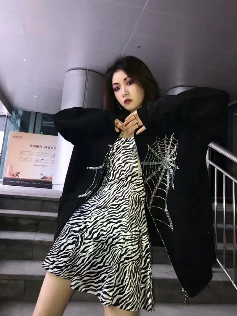 Женский пуловер на молнии, с надписью, с длинным рукавом, в готическом стиле, свободная уличная одежда большого размера, Осень-зима 2021