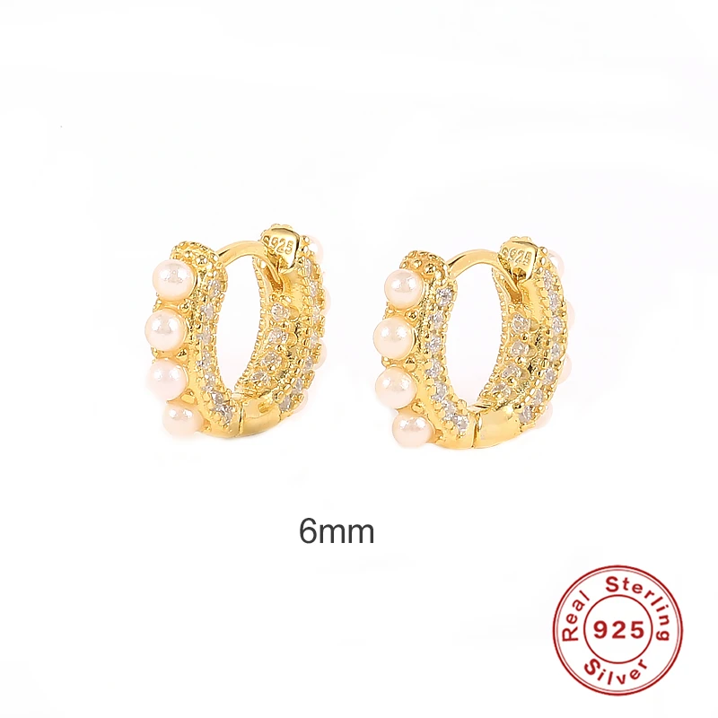 Женские серьги Huggie из стерлингового серебра 925 пробы, тренд Pendiente Plata 2021, 6 мм/10 мм, серьги-кольца с жемчугом 925 пробы, ювелирные изделия, Brincos