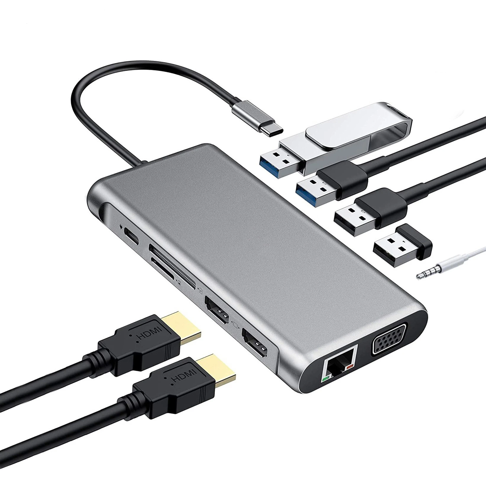 USB-концентратор 12 в 1 с двумя портами HDMI 4K USB 3,1 на 4 порта ...