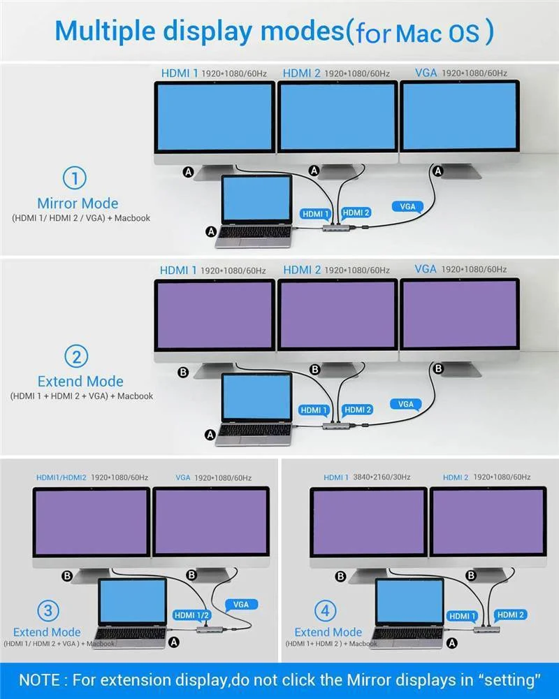 Концентратор USB C с тройным дисплеем, адаптер для двух мониторов, ...