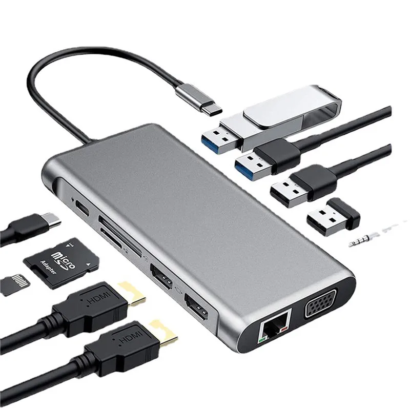 12 в 1 Тип C док-станция с двойной HDMI Micro SD устройство для считывания с tf-карт VGA на Экран дисплей адаптер для usb-концентратора типа C для Macbook Google