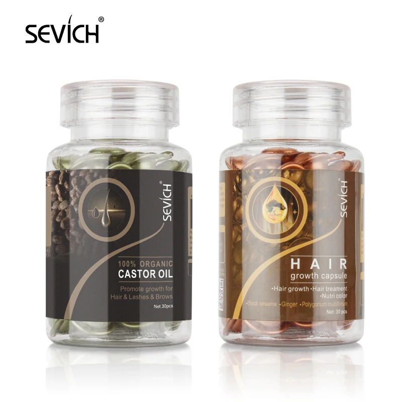 Капсулы для ухода за волосами SEVICH, 30 шт.бутылка, Витаминная капсула средства против выпадения и истончения волос, органическое касторовое масло для ухода за волосами