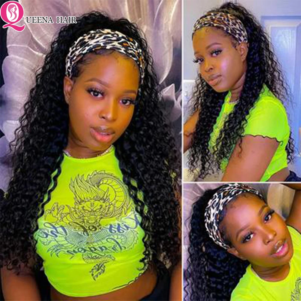 Queena парик с головной повязкой человеческие волосы волнистые сцеп...