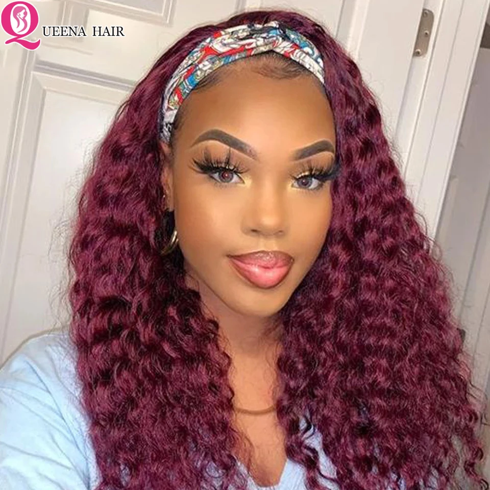 Волна воды парик с головной повязкой человеческие волосы Glueless Ombre бордовый кудрявый парик с головной повязкой для женщин бразильский парик с повязкой на голову