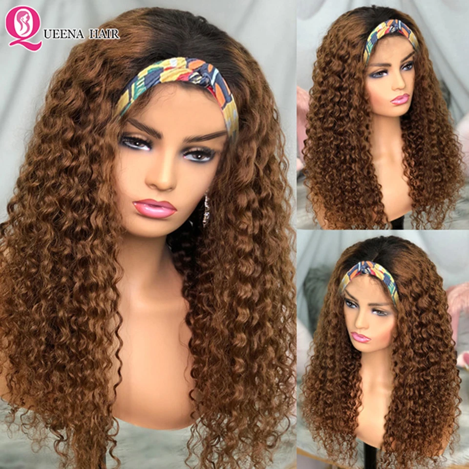 Обруч Омбре парик человеческие волосы кудрявые вьющиеся волосы парики для черных женщин Remy бразильский манекен для шарфа парика 1B/27 кудрявые без гелевого парика 180%