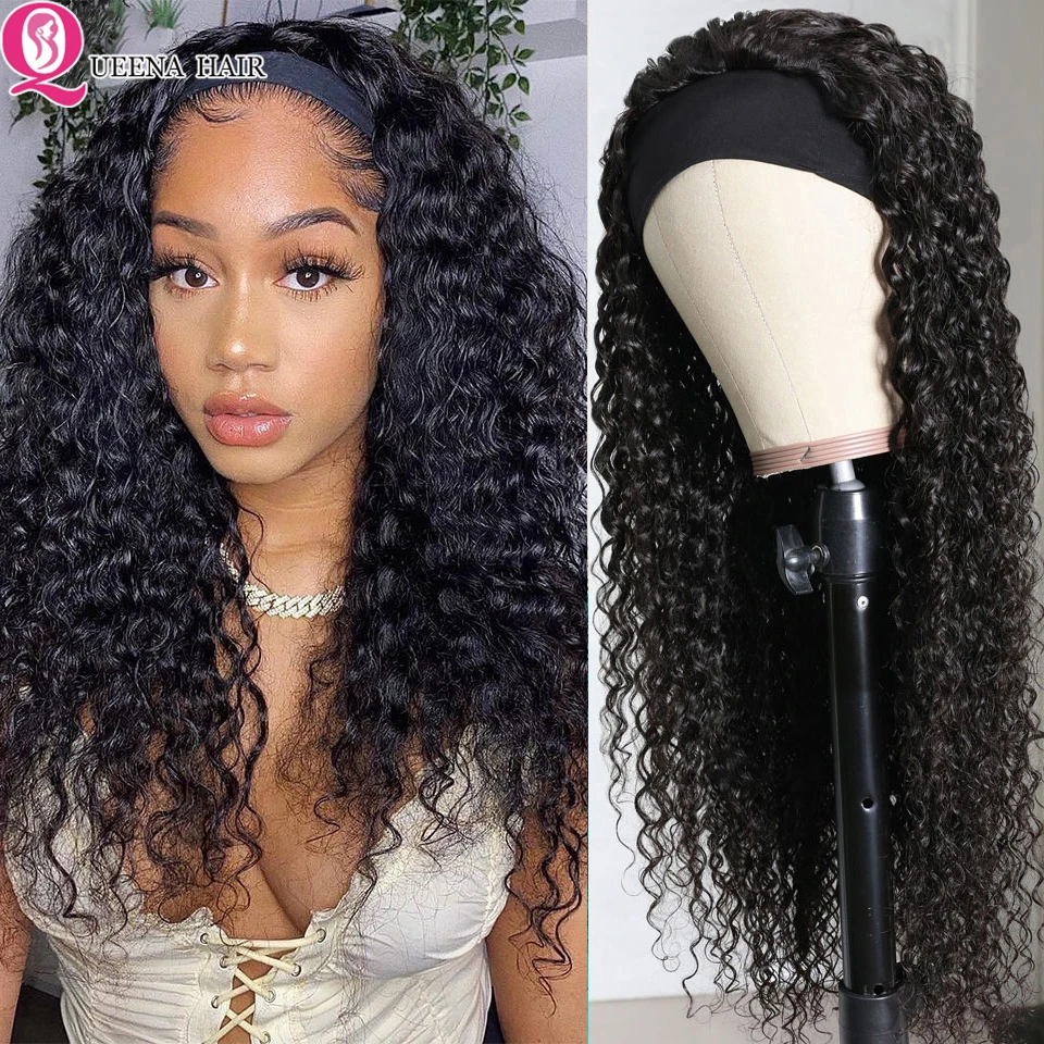 Scarf Wig Natural ColorWater Wave Wig Human Hair Headband Wig