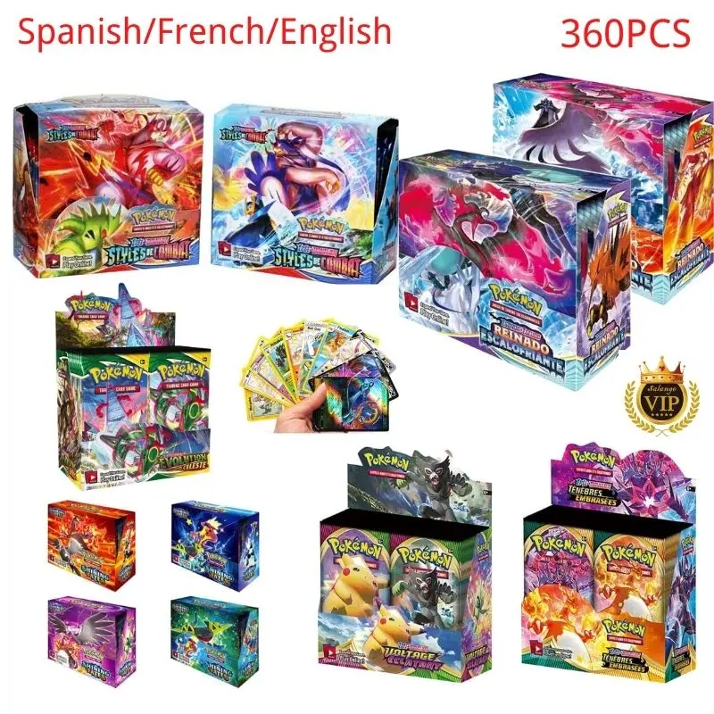 Новинка, французскаяиспанскаяанглийская версия карт Pokemon TCG: Pokemon Booster Box, стили DE 360 шт., коллекционная игра для карт, игрушка для детей