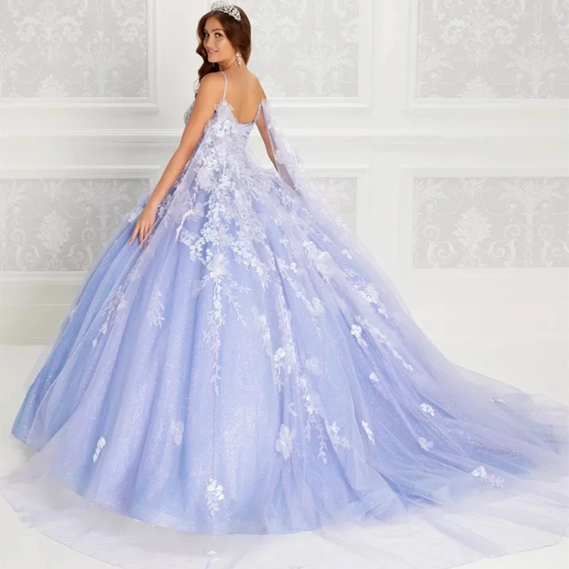 Блестящие Бальные платья с плащом-накидкой с капюшоном 2021 на тонких бретельках сладкий 15 платье принцессы вечерние бальное платье кружевное с аппликацией из бусин 3D цветы