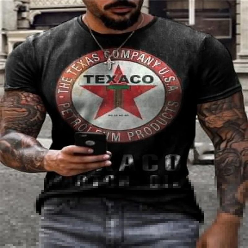 Мужская свободная футболка с принтом пятиконечной звезды, Летняя По...