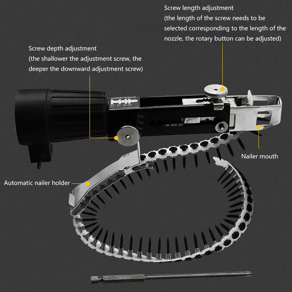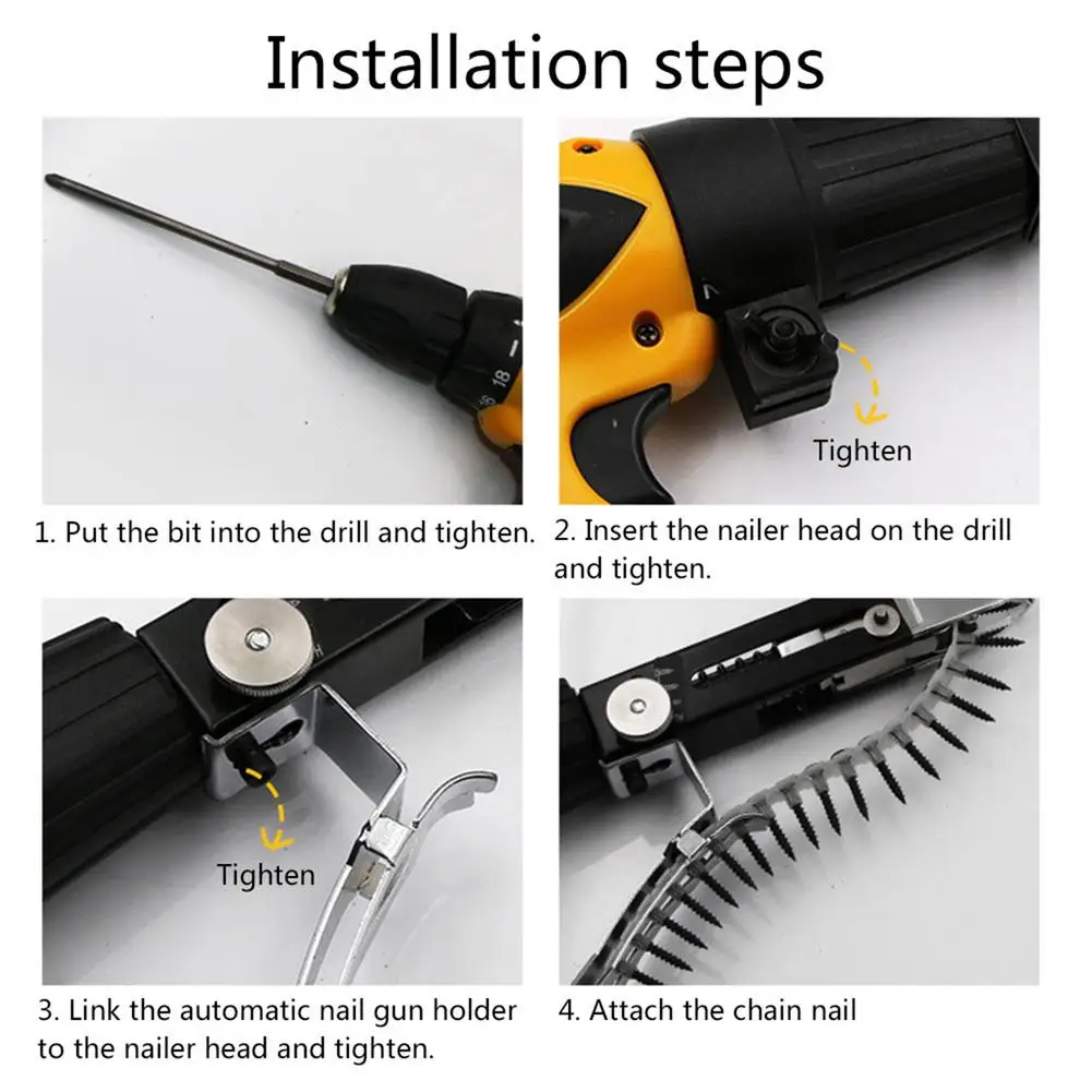 Автоматический пистолет для ногтей с цепью, адаптер, винтовой пистолет для электрической дрели, деревообрабатывающий инструмент, Беспроводная электрическая дрель, Набор насадок