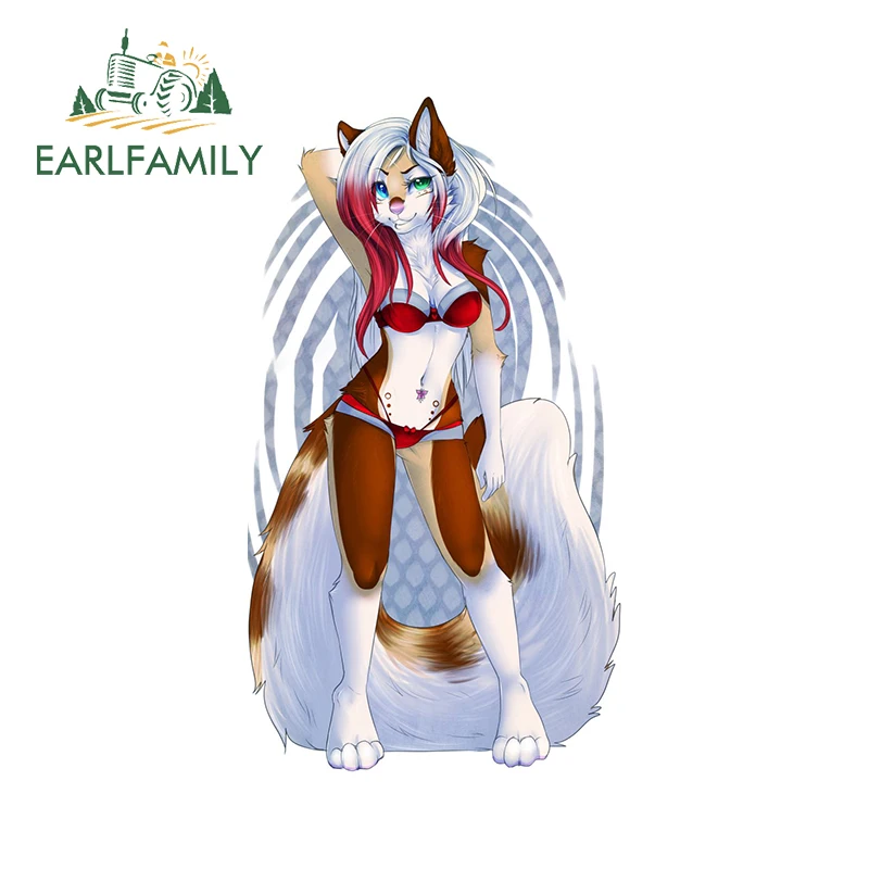 Виниловая наклейка для автомобиля EARLFAMILY, 13 см, с пушистым волком