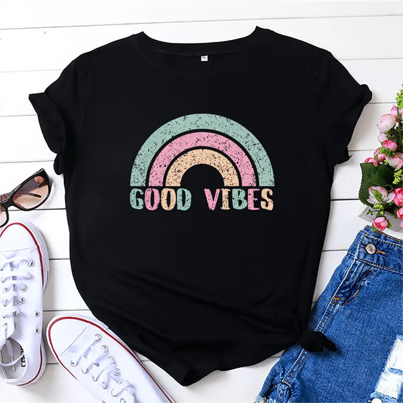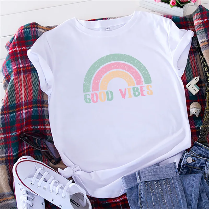 Принтовые тройники Цвет Vibes принт футболка для женщин размера плюс футболка Летняя Детская футболка с короткими рукавами футболки, женские футболки, модные топы