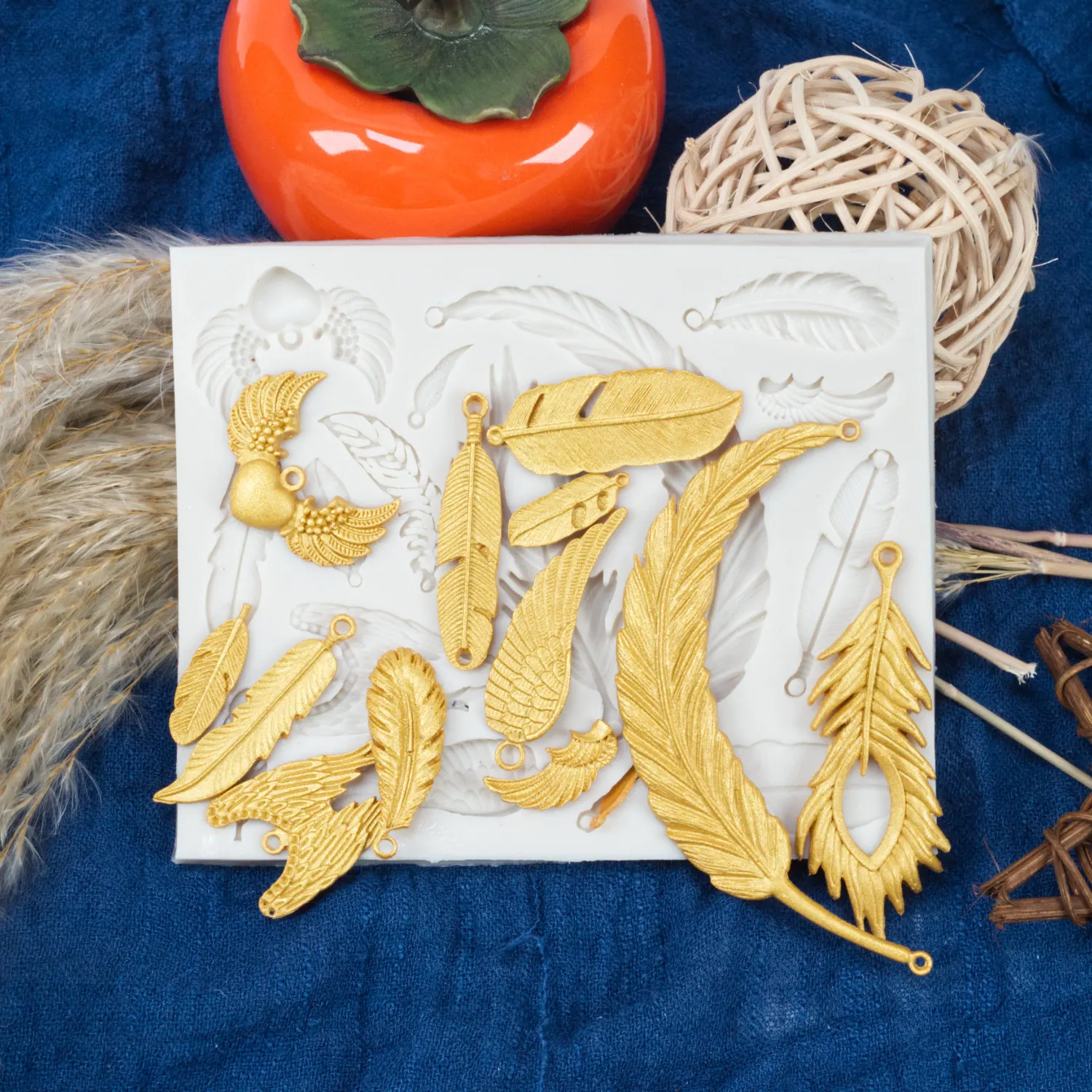 Силиконовая форма в виде перьев и пуговиц для украшения тортов