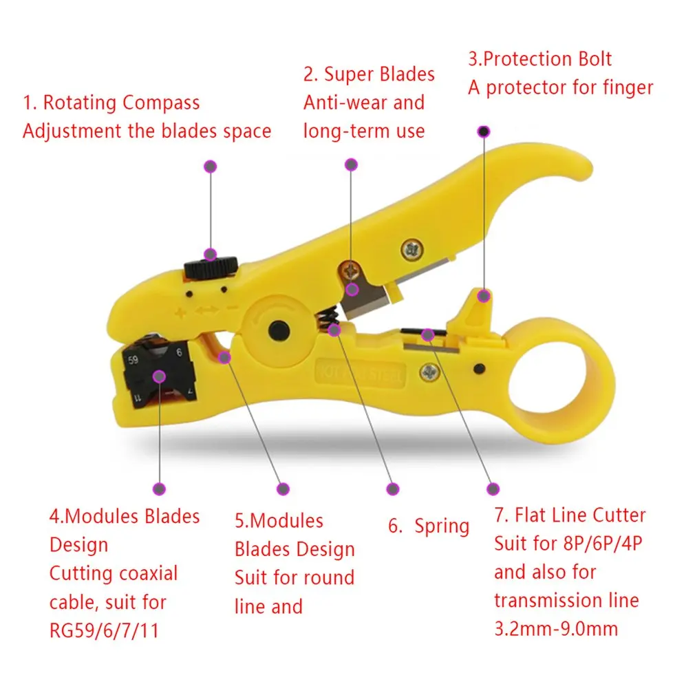 1. Это плоский или круглый провод коаксиальный инструмент для зачистки.