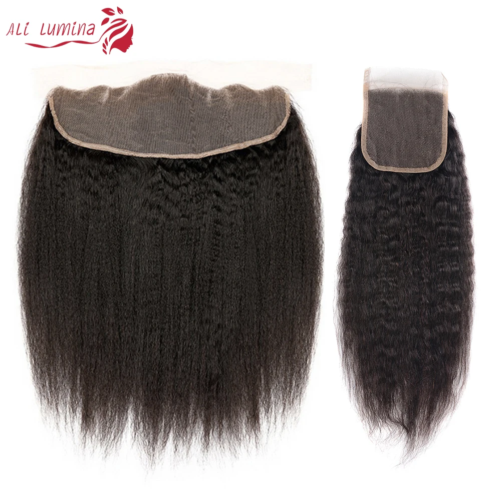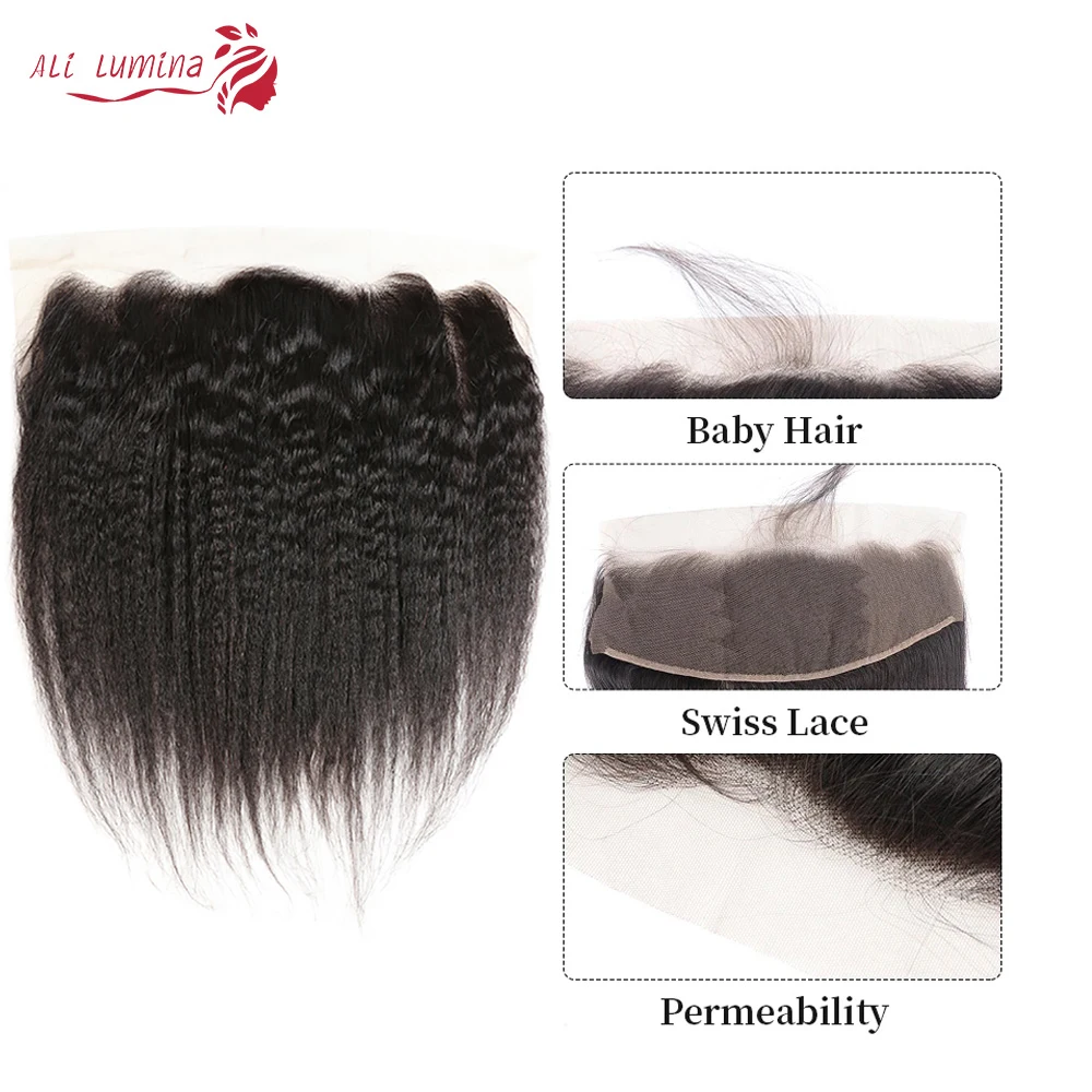 Прозрачные курчавые прямые фронтальные бразильские волосы Remy, предварительно выщипанные человеческие волосы Yaki, кружевная застежка только 4x4, кружевная застежка