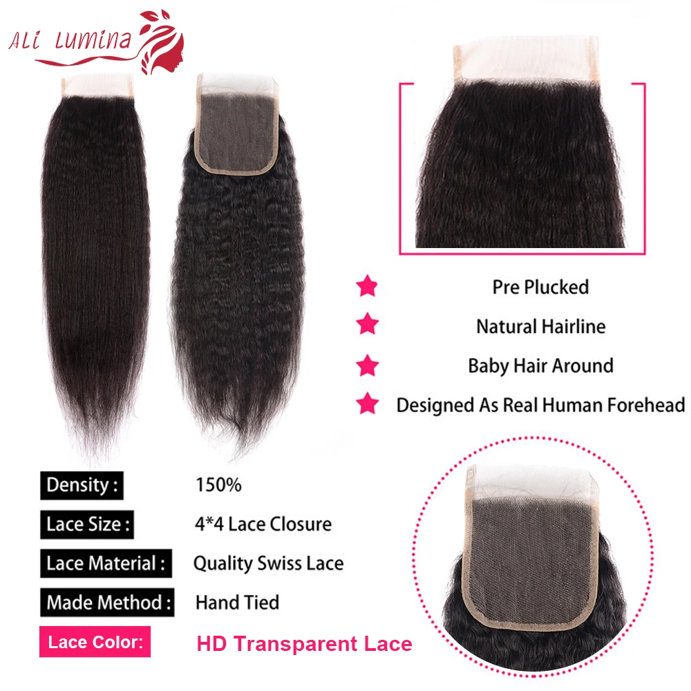Прозрачные кудрявые прямые кружевные фронтальные бразильские волосы Remy Предварительно выщипываемые человеческие волосы Yaki Кружева Закрытие только 4x4 кружева закрытие